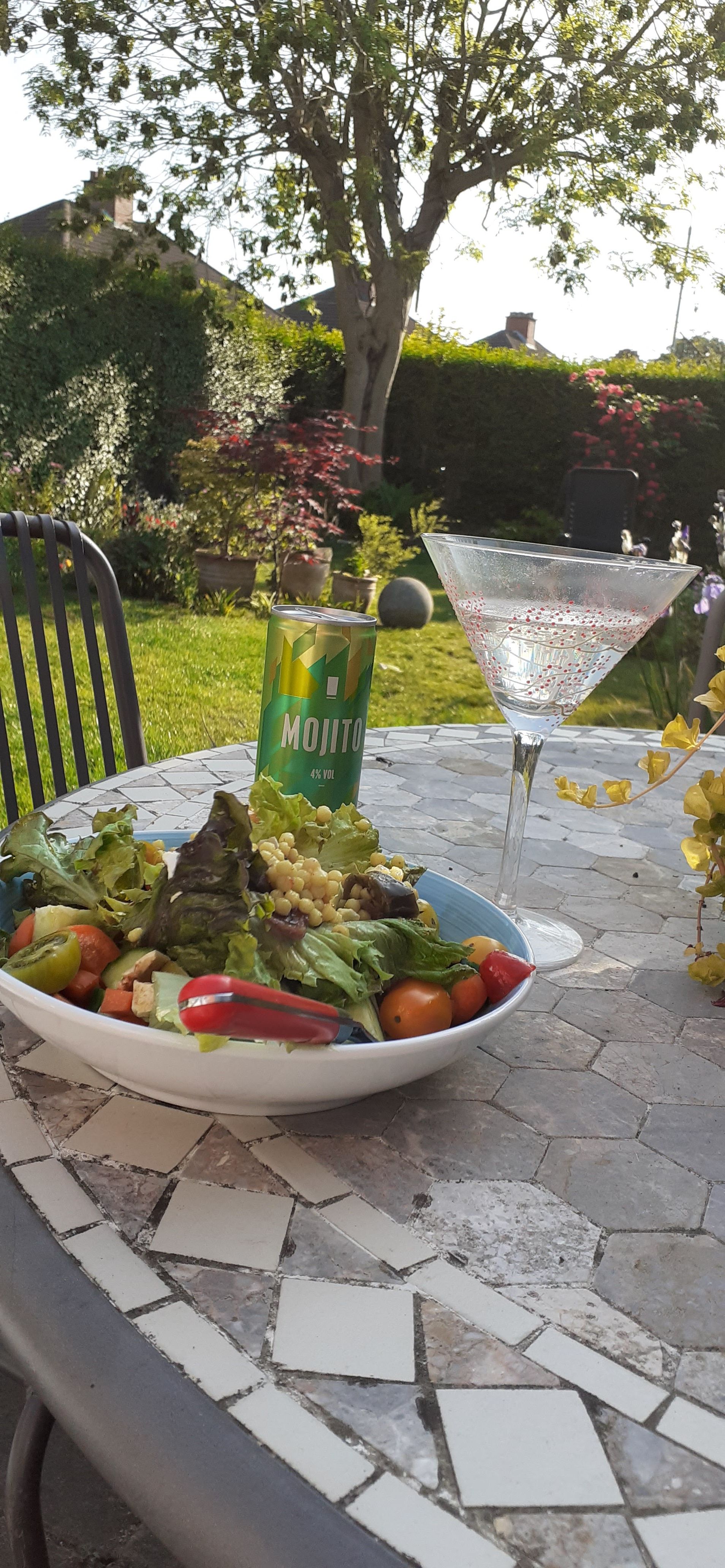 With an exhausting match on Friday, a very productive Saturday, and then another long match in the heat on Sunday, I needed this – a mojito and a lovely salad in my back garden.