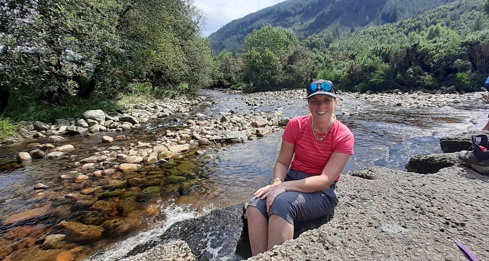 Here is Sarah dipping her feet in the heavenly cool water at the trail's end.