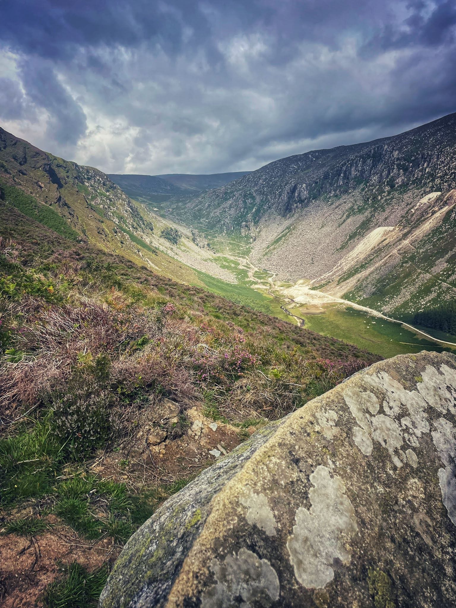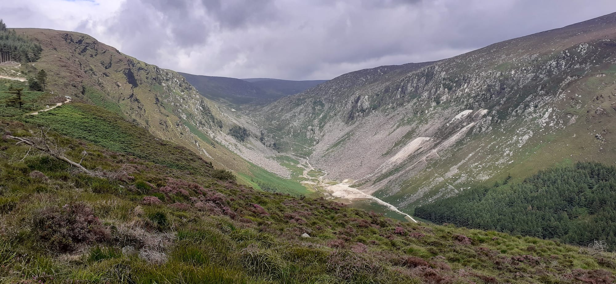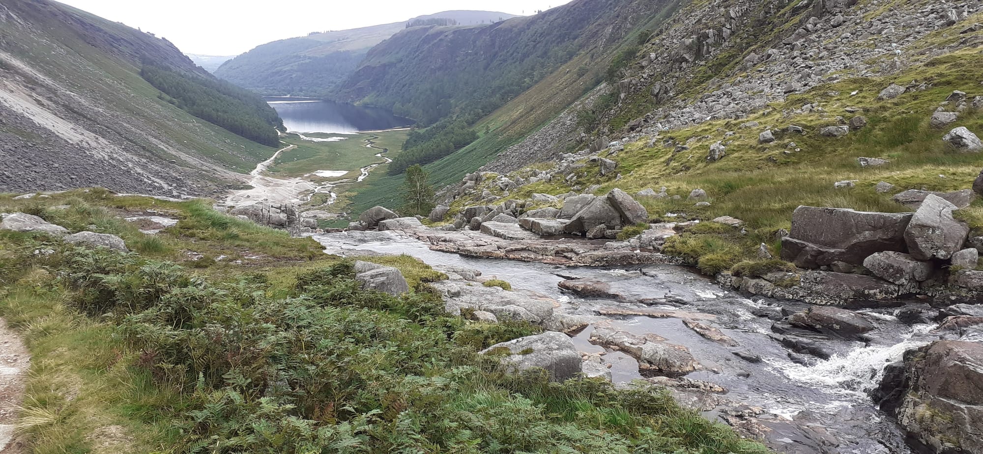 The view from near the top of the valley, looking down to Glendalough lake at the bottom.