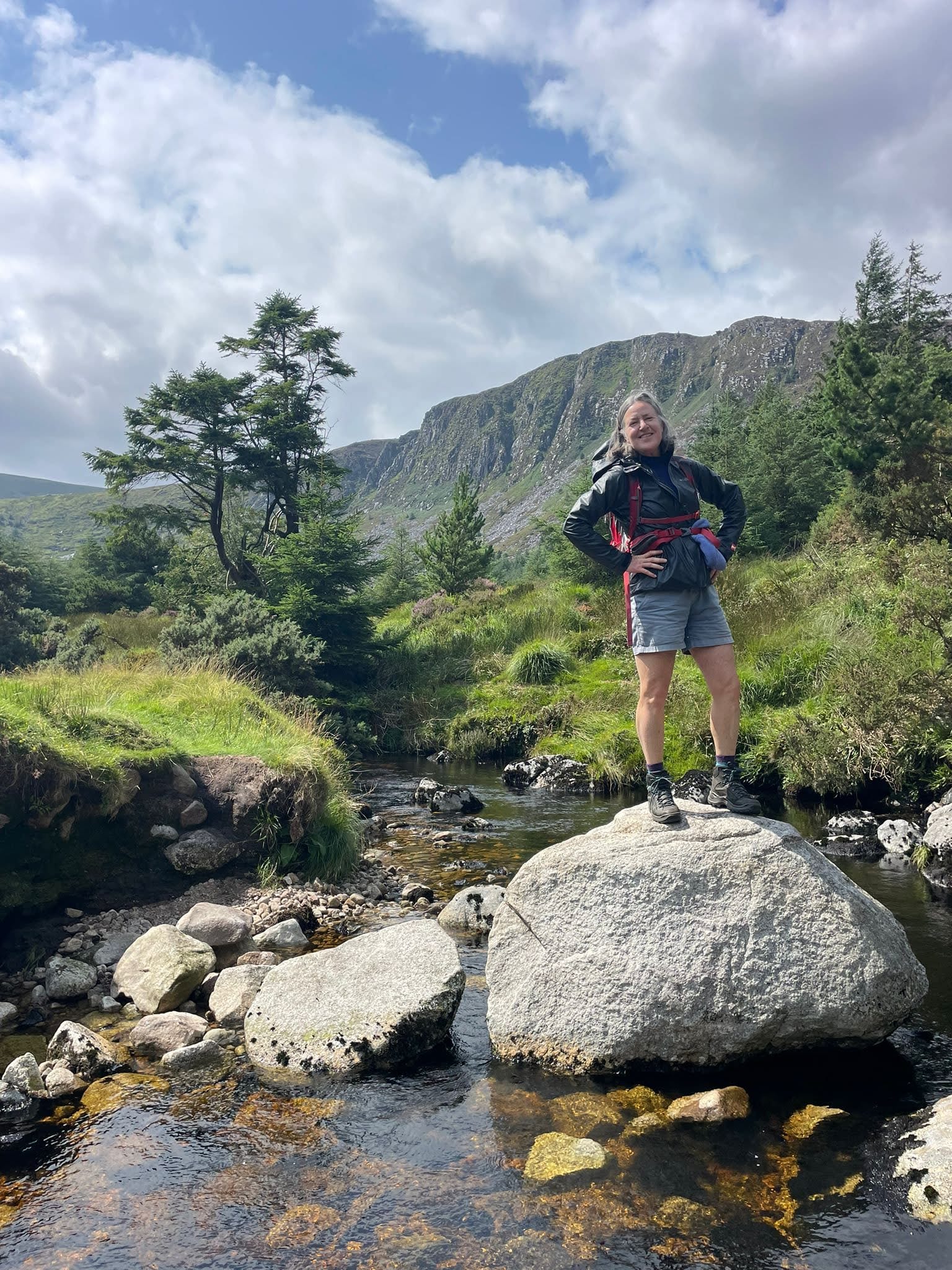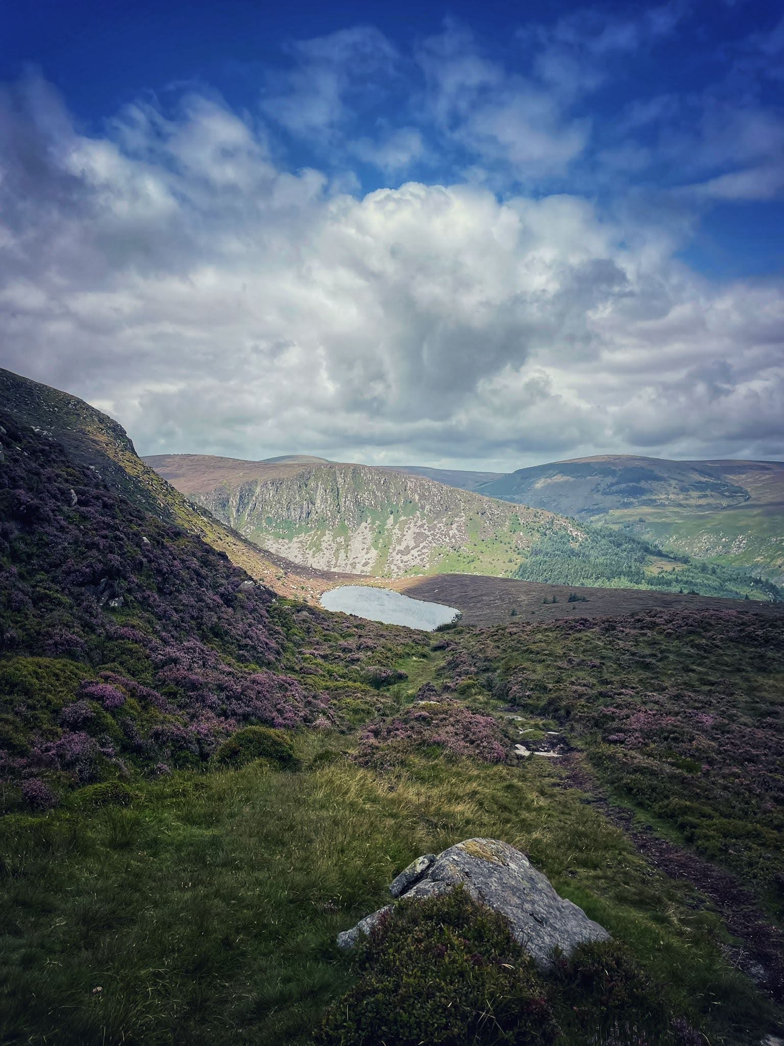 From Wiki: "Lugnaquilla overlooks the Glen of Imaal to the west and Glenmalure to the east." That sentence reminds me of being a teenager in Ireland in the 70s in absolute thrall to the beauty of the language and the lilt of the music and power of the myths. There was a lovely highland lake on the hike – the photo below taken by the trip leader, Cathy.
