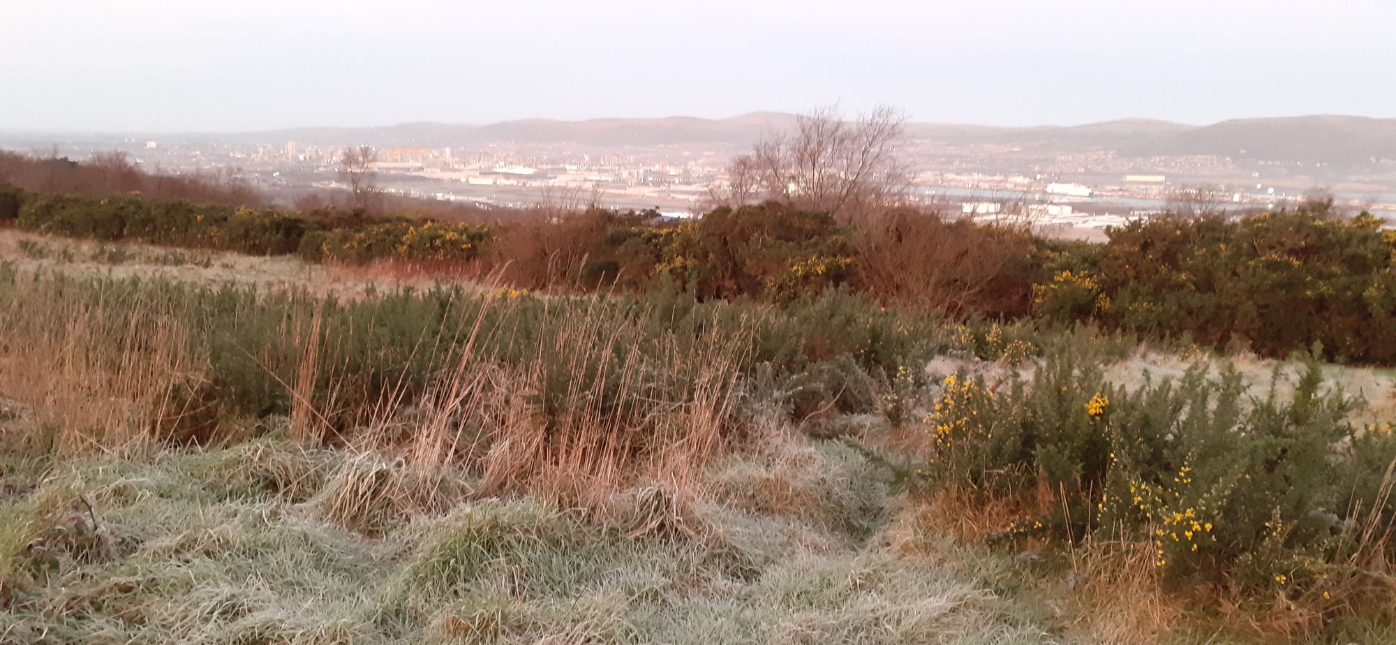 Friday morning I drove Paddy to Redburn Park for a pre-work walk--David wasn't available to walk Paddy so no golf. This (below) isn't a great photo of the city from the park but I thought a lot about the movie Belfast and how people are discovering the city for the first time. The montage at the beginning shows the city off to great effect.