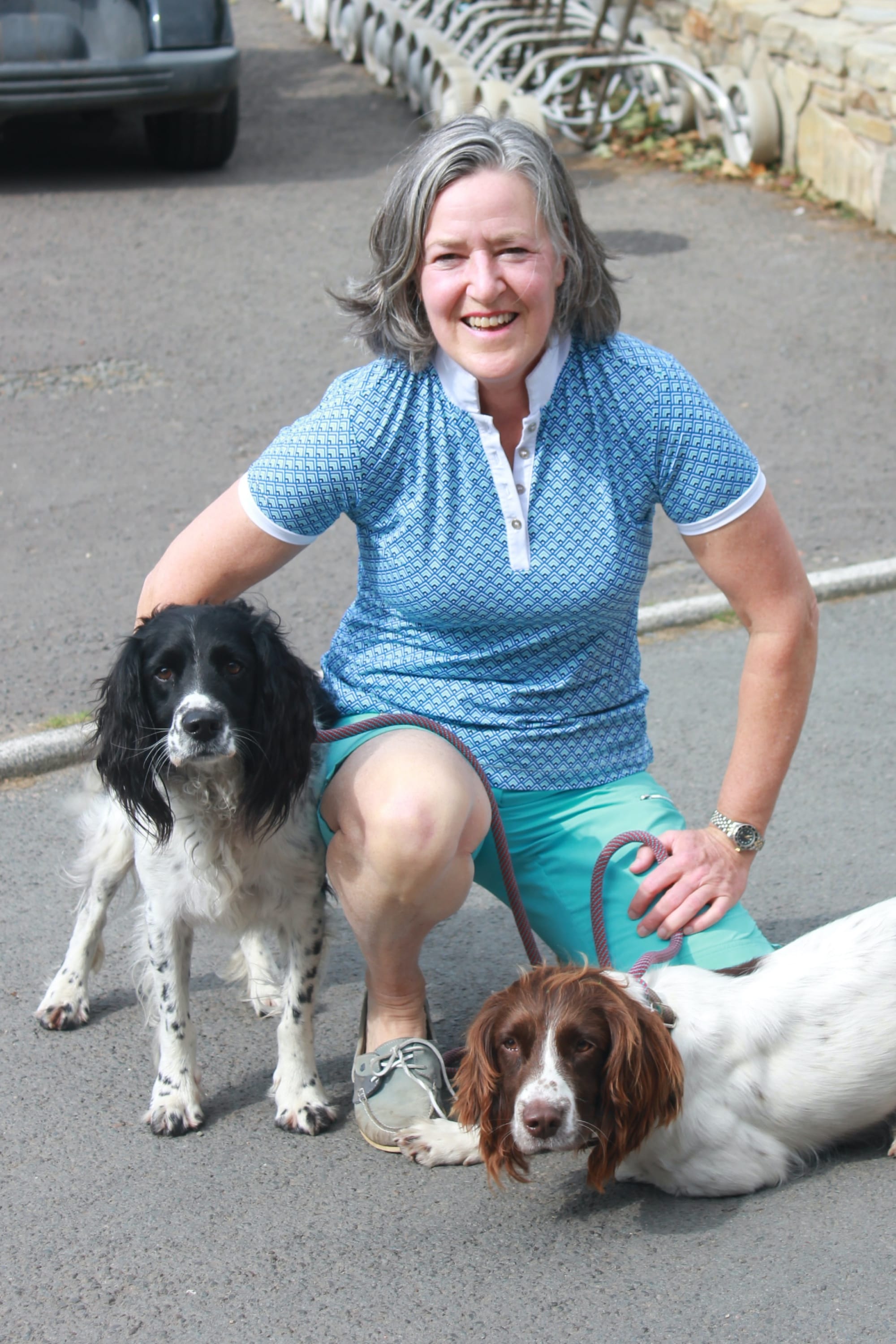 I am writing in mid-September and am glad to say I survived August. It was choc-a-bloc and I don't do choc-a-bloc well, so I'm very glad to have come through the other side. As I mentioned, four golf matches in the first week of August. Here is me with my hounds on 8 Aug, Lady Captain's Day.