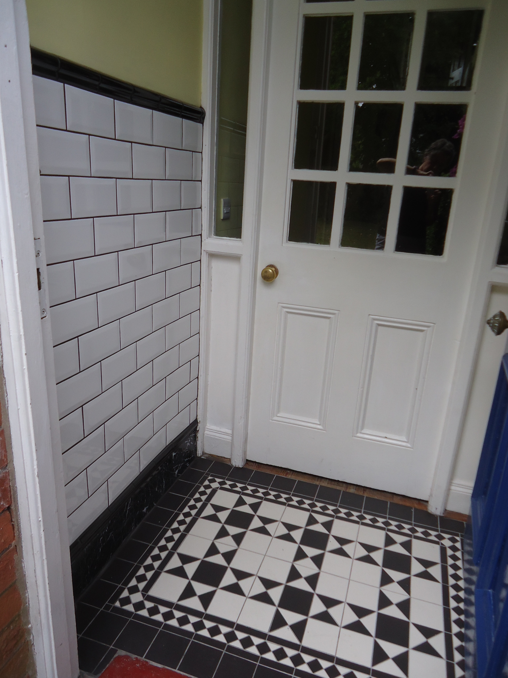 Simon recommended I get a bullnose tile for the top, two rows of pencil tiles, and a mosaic in between. I had a hard time finding anything that would do as a mosaic, but I did find lovely marble for the base. I bought two rows of bullnose, thinking I might do a band at the top rather than bullnose and a band further down with two pencil rows. I scotched that and used one row of bullnose at top, no decorative band, and another row of bullnose between the subway tile and the marble. It is possible I have recounted all of this already. If so I apologise. I just fussed over it for days--wanting to go for a bit of decorative flourish and then deciding that the space was too small--keep it simple. But much product bought and returned as alternatives explored.