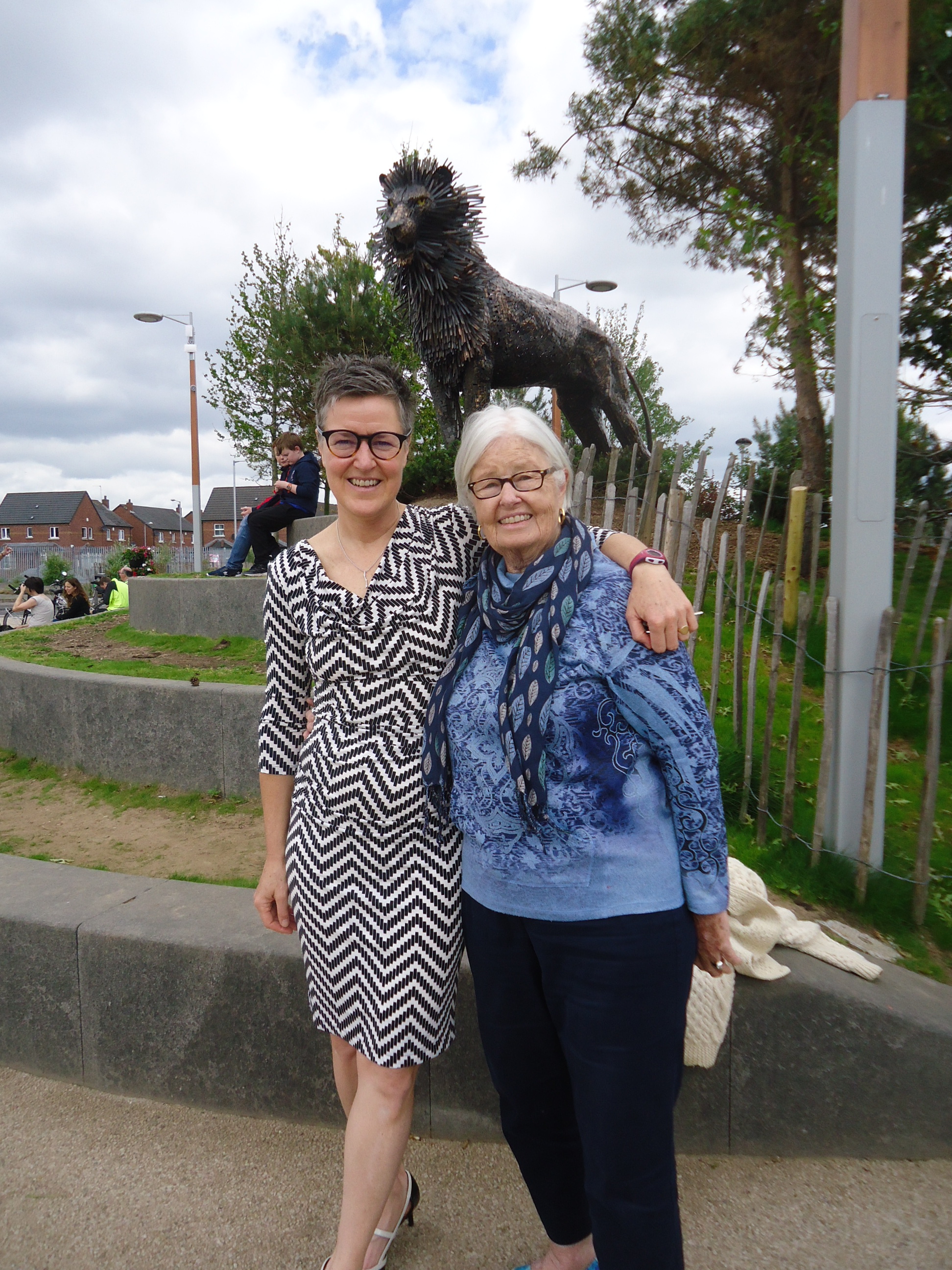 On the way home, we stopped at C.S. Lewis Square to listen to a silver band. Here we are with a statue of Aslan.
