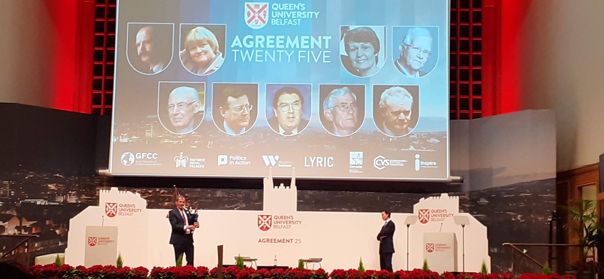 I spent Tuesday at Queen's, which hosted three days of events related to the 25th Anniversary of the Belfast Agreement. Monday's events featured the Clintons, Tony Blair and Sen. George Mitchell, whose bust was unveiled that day.