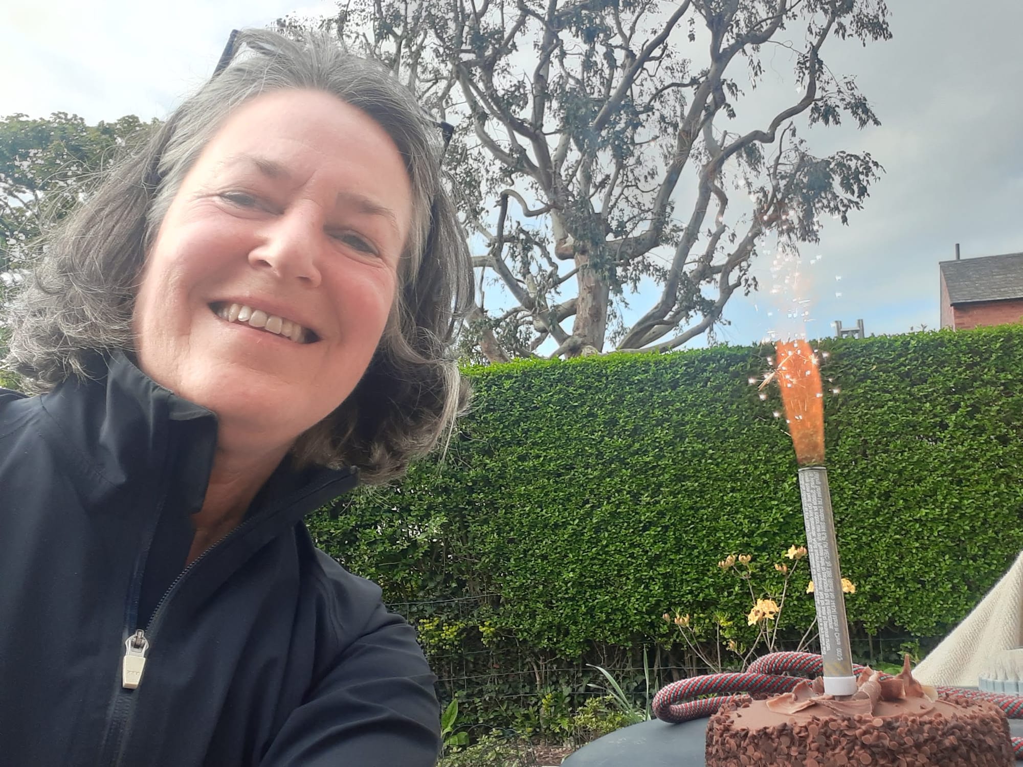 I stayed after the round of golf for the carvery – meat for meat eaters and nut roast and veg for me. Then home to chocolate cake from my buddy Patricia, complete with firecracker candle.