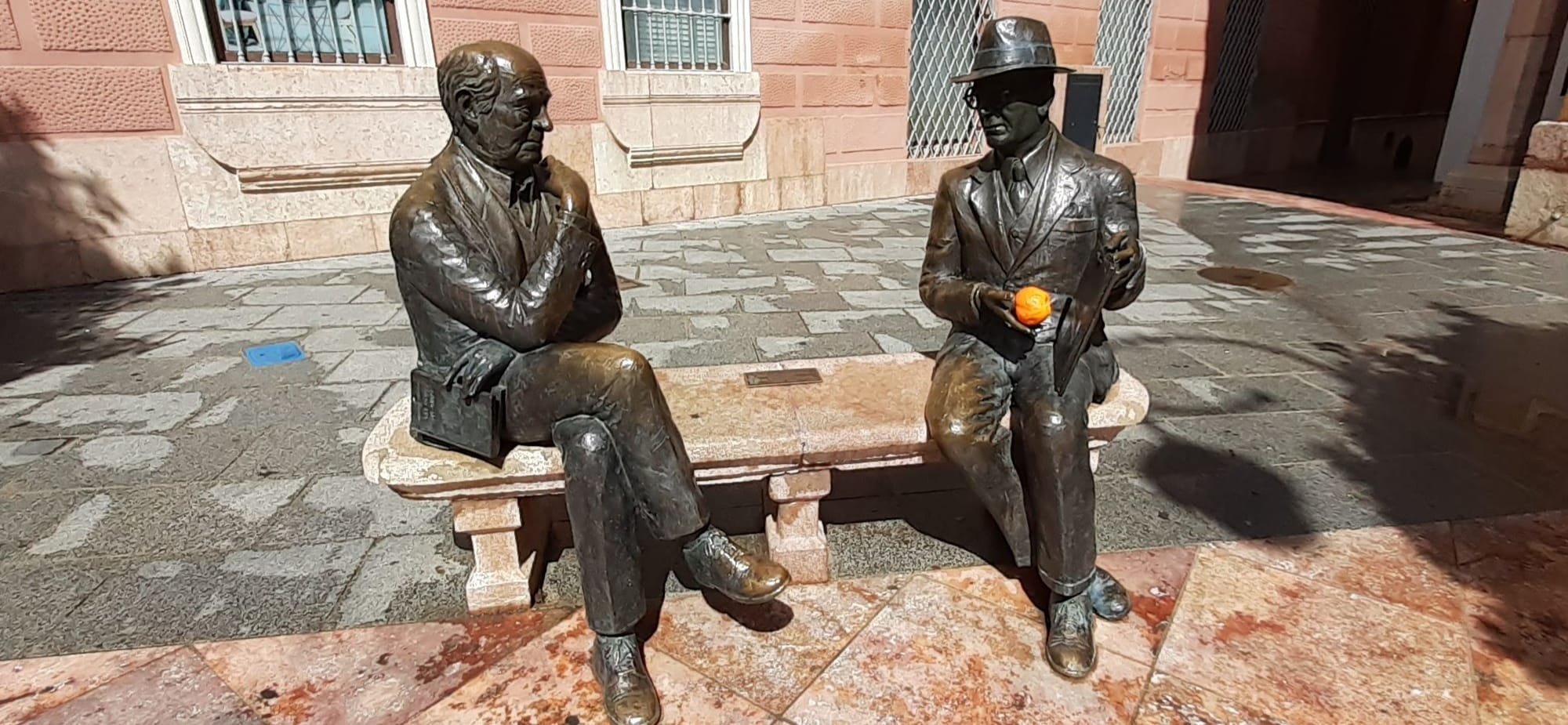 I think one of these men is the architect of the church. I should say there are lots of orange trees with big ripe Seville oranges on them. Occasionally they are crushed in the street, providing a lovely fragrance.