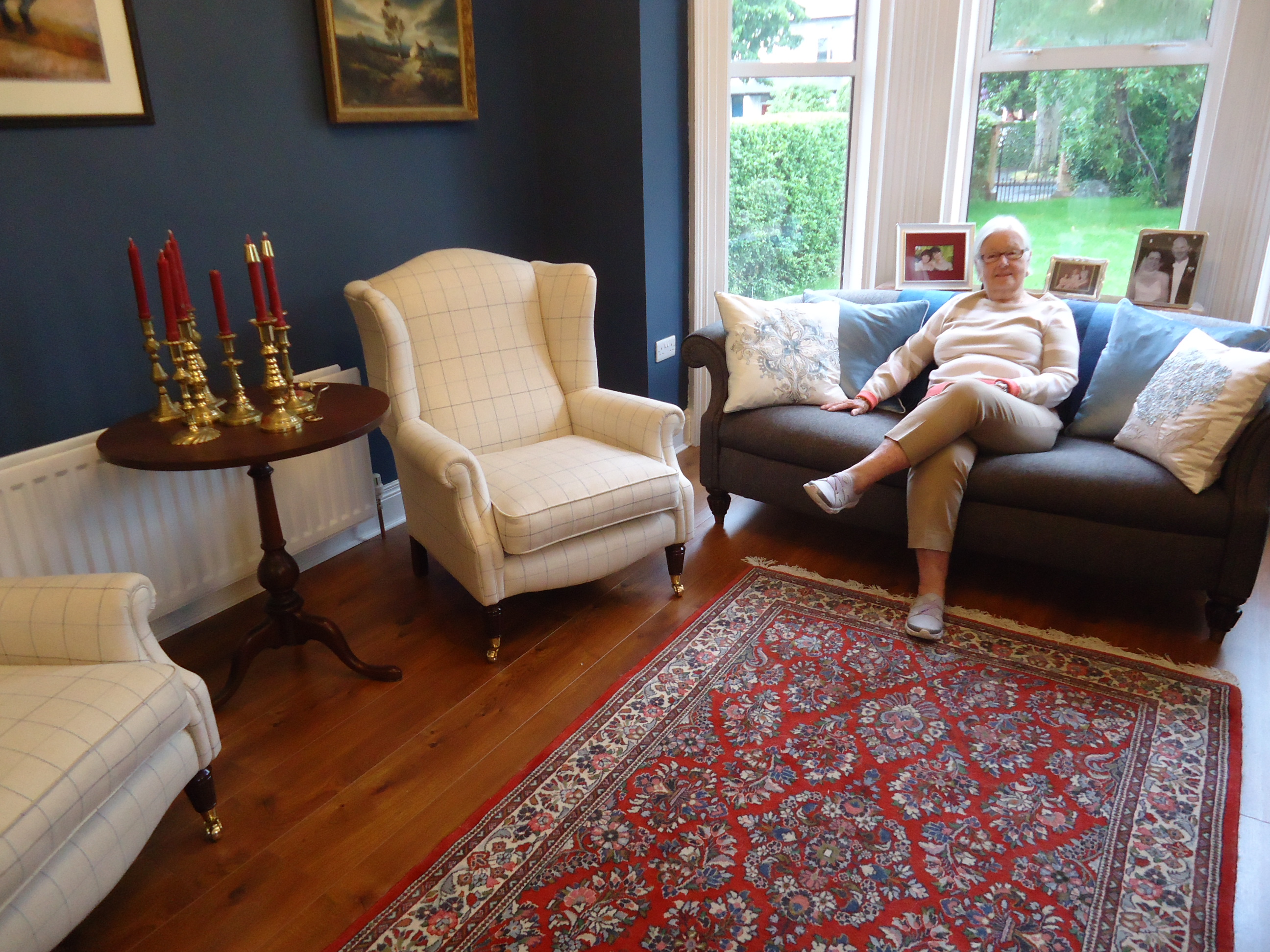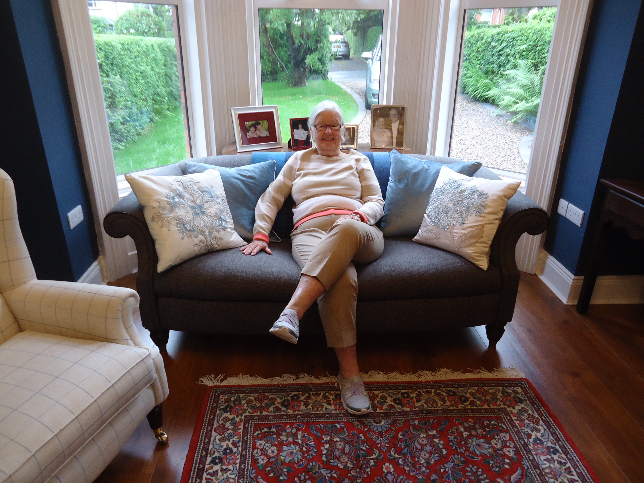 Sadly, mom's trip is over. A parting shot in the living room, with the Laura Ashley pillows she helped me select.