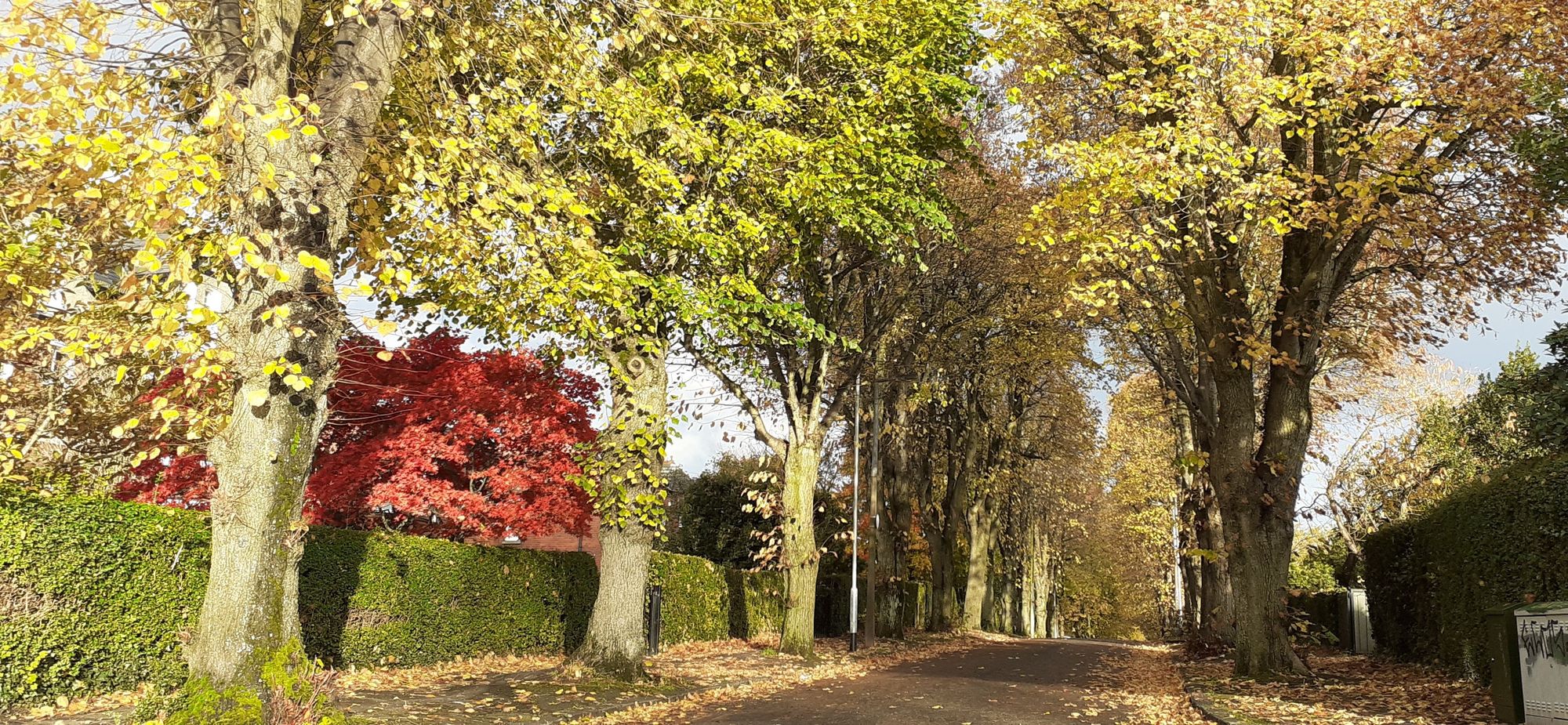 You feel as if you are in a park. The downside is a lot of raking. The upside is a street sweeper cleans all the leaves swept to the curb.