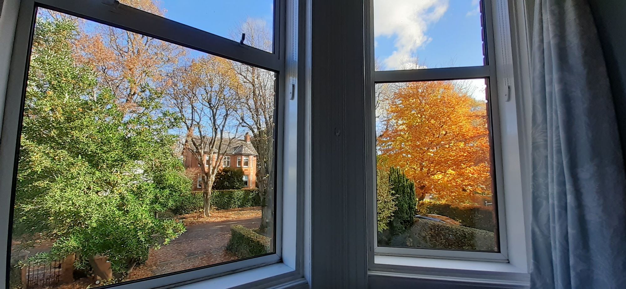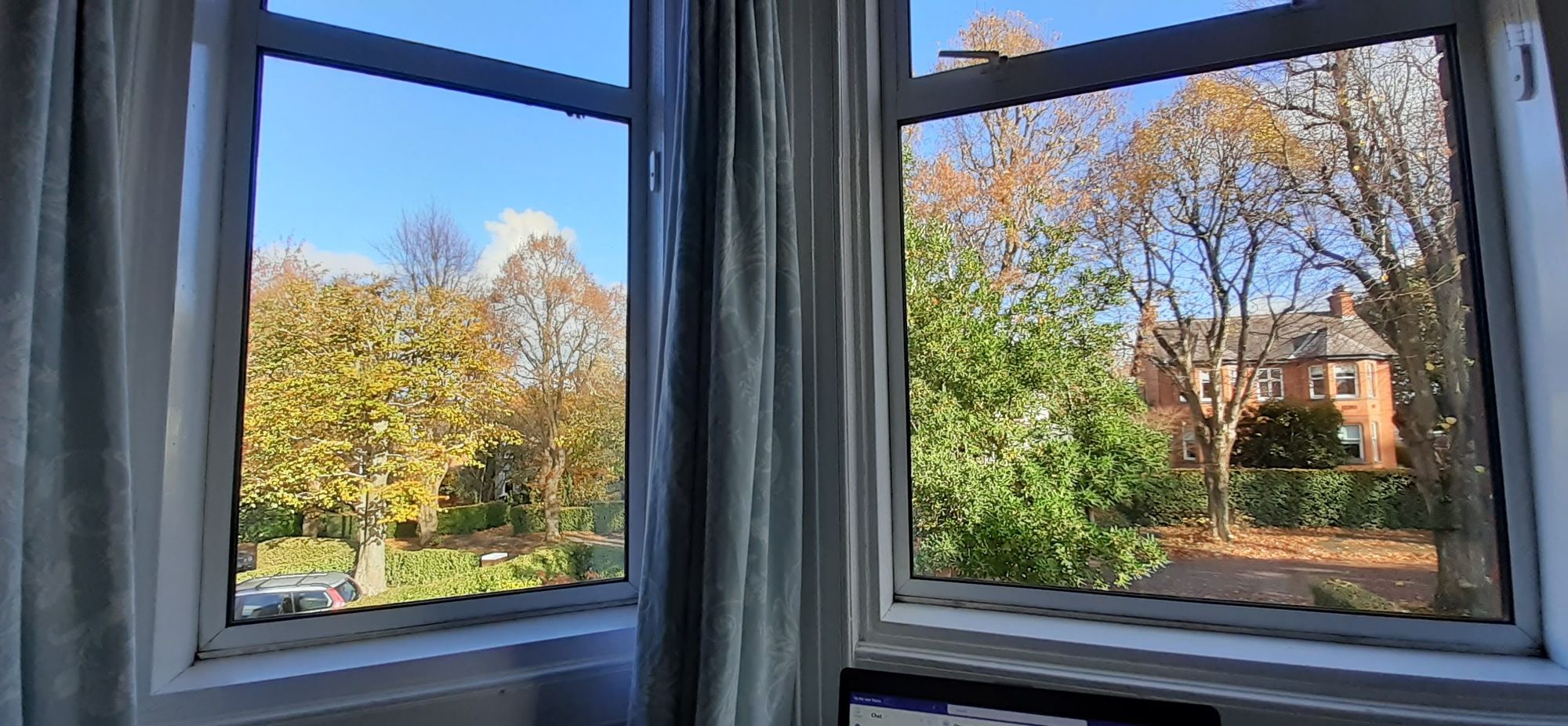 Isn't my street lovely? I've been working in the upstairs lounge to take advantage of the view: