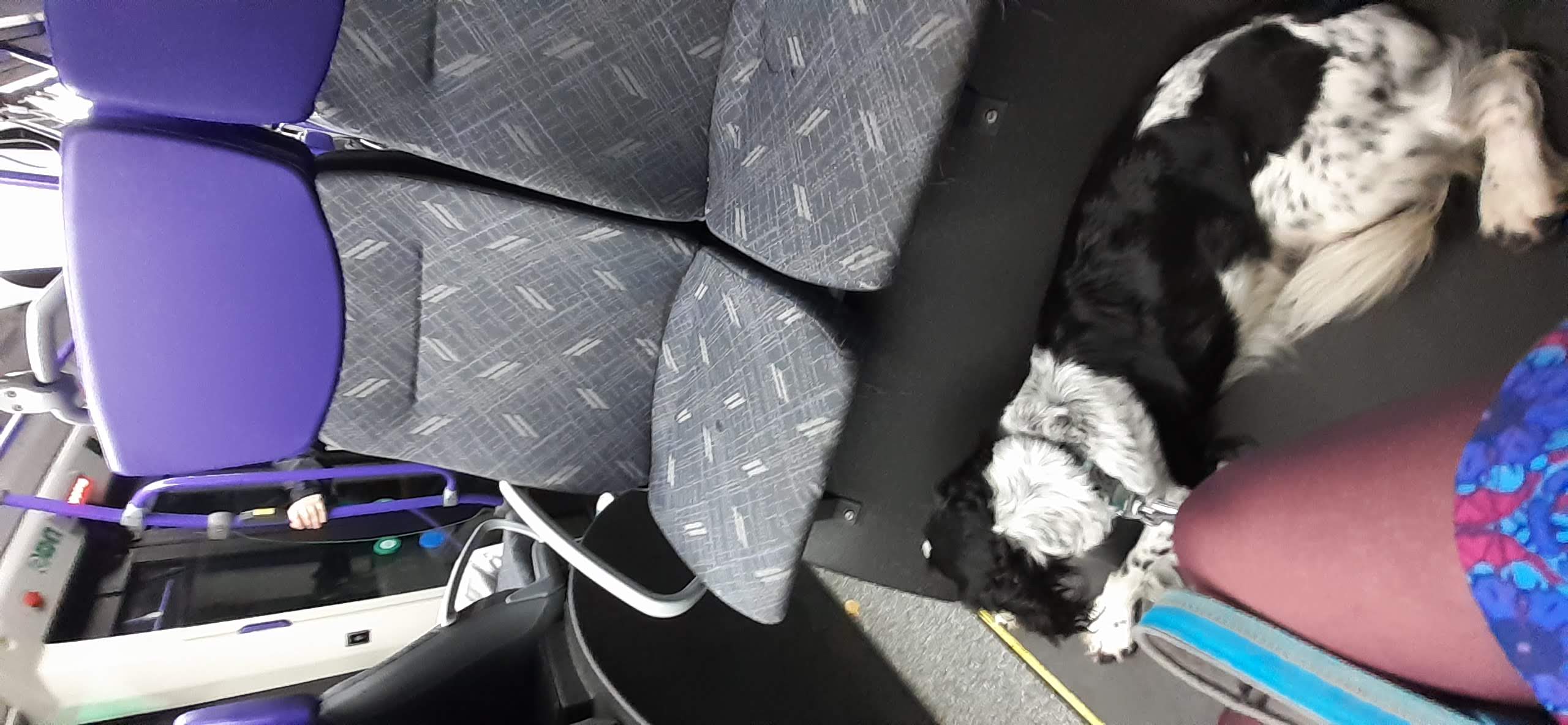 In other news... Monday night I saw a Georgian film called Blackbird, Blackbird Blackberry, about a woman forging her own path in midlife. It was interesting. Tuesday night was a documentary about preserving a breed of Hungarian dog. Dogs were invited, so here's himself on the bus.