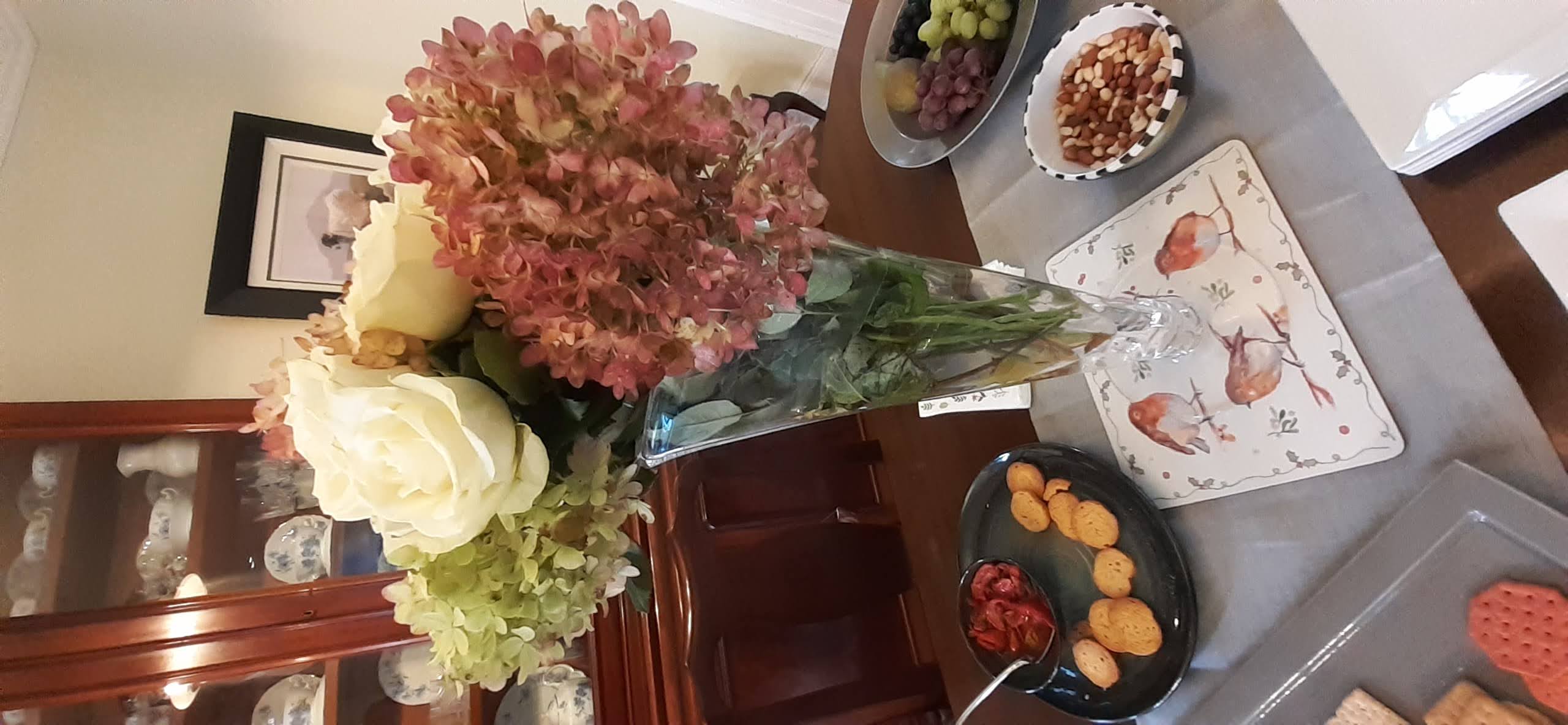 The flowers are a mixture of grocery store roses and my hydrangeas:
