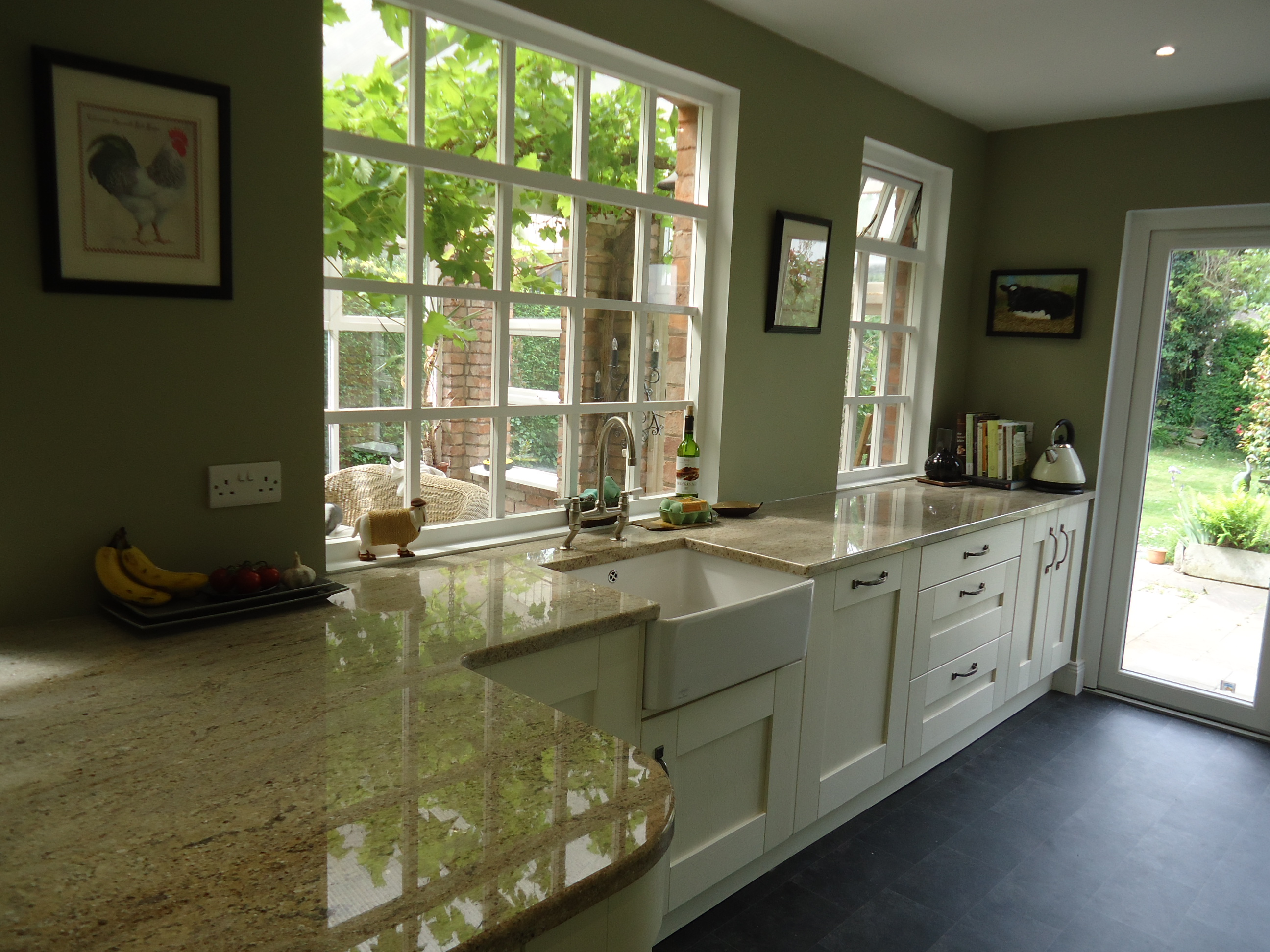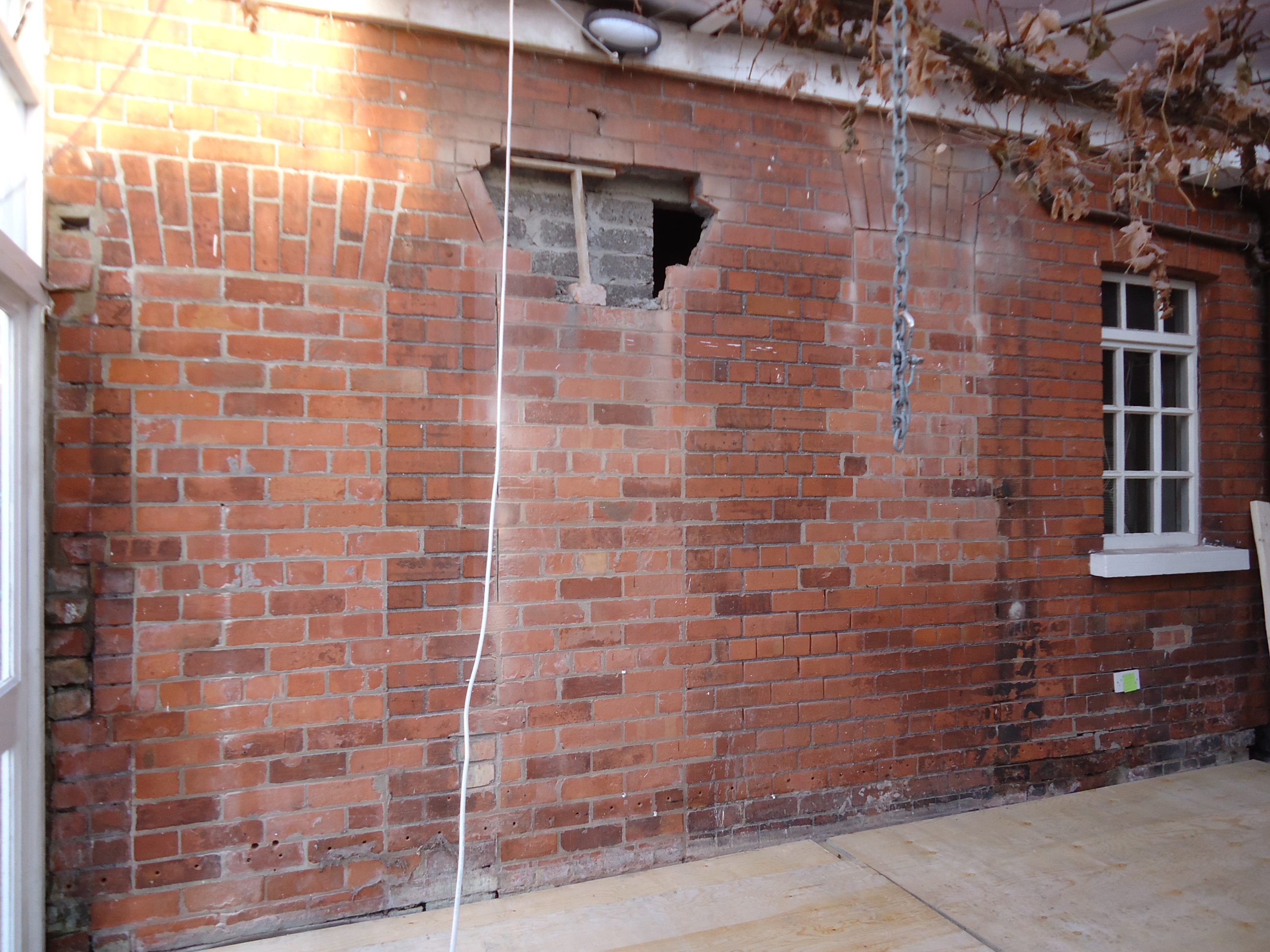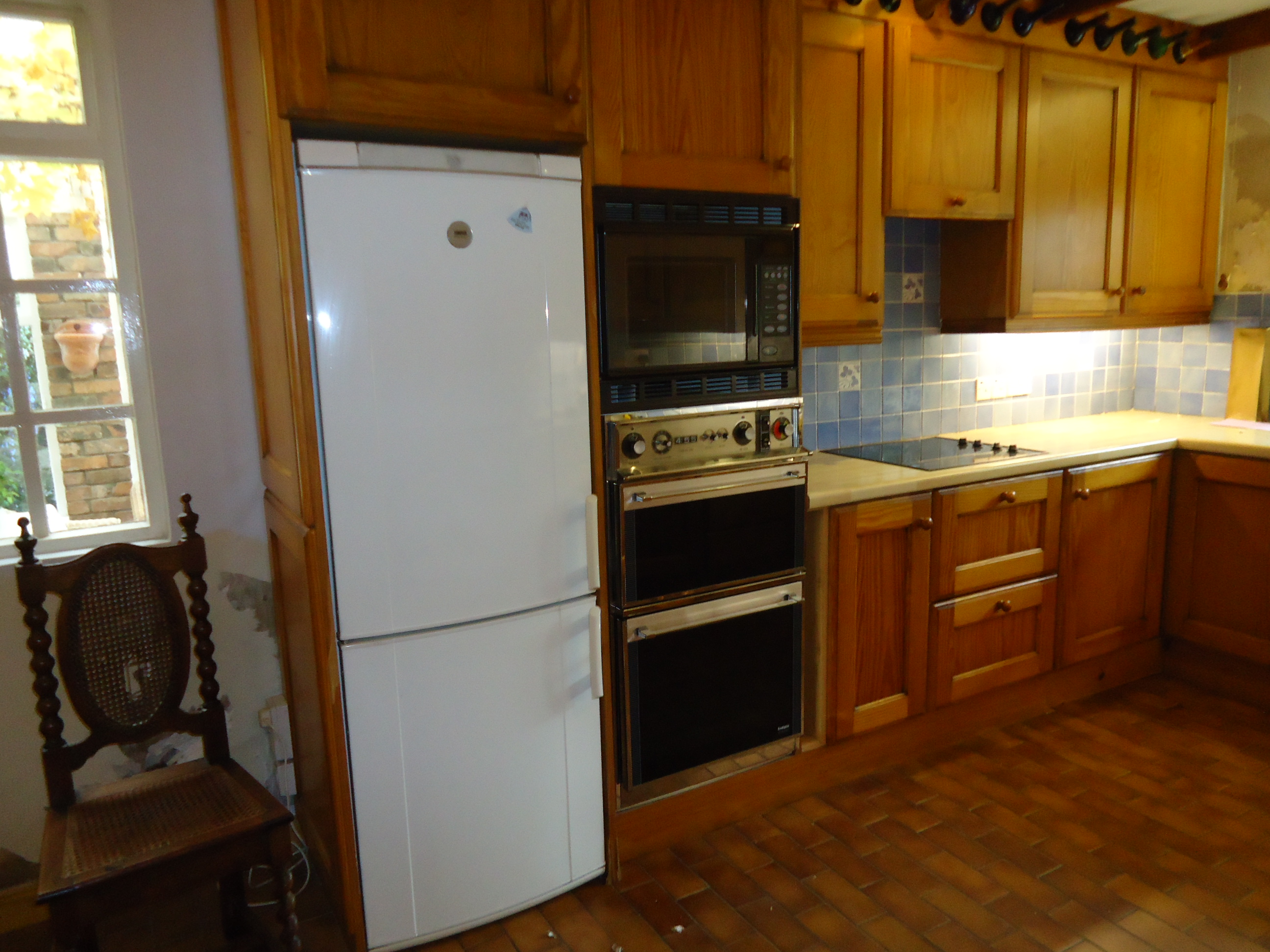 The contractor has asked for before and after shots of the house. Here are a few of the kitchen. The first view is taken from the conservatory--the kitchen is behind that wall.