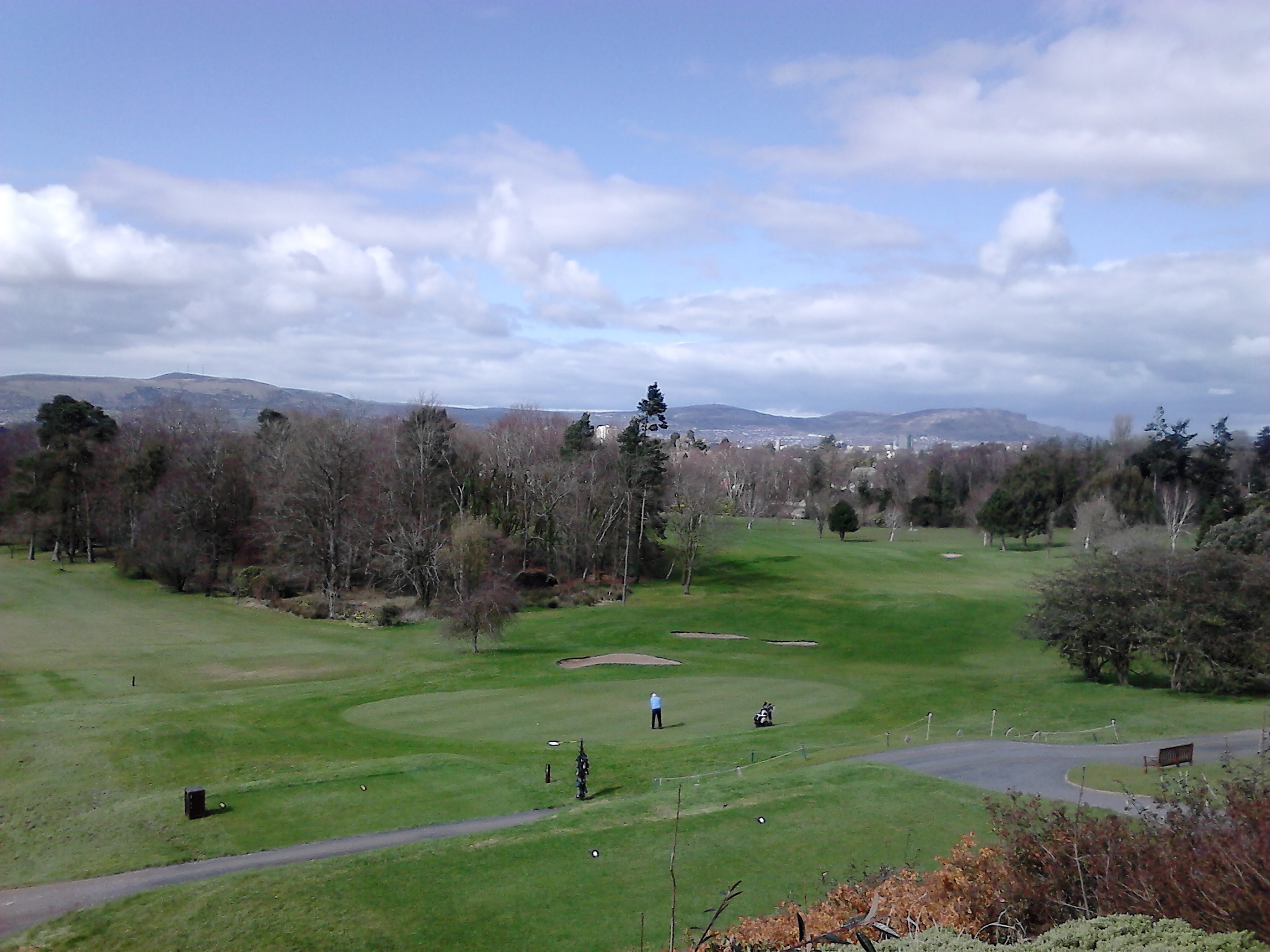 I took these photos on my phone and I can’t figure out how to rotate them. It looks fine on my desktop then spins once I upload it. (Note to self: don’t take verticals.) Whatever. What I love about the view is the Belfast hills in the background. Above is the 18th hole, I think this is the 17th.