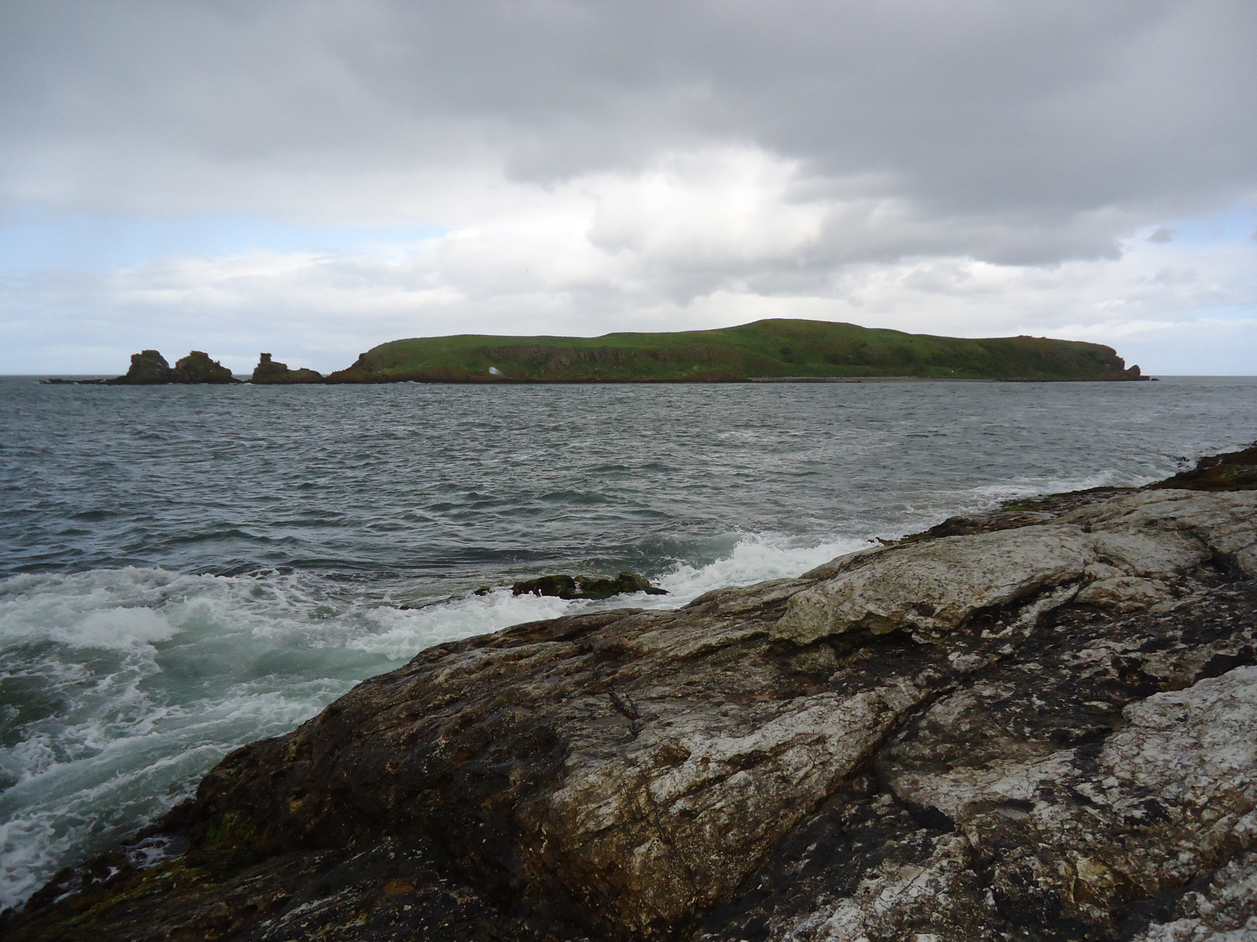 It's been a while since David and I had a down weekend, so this weekend was it. Today we went to Islandmagee, which used to be an island but now is connected to the Antrim coast north of Belfast. We toured a garden, which was more like eight gardens, as part of a National Trust fundraiser. Then we went to Browns Bay and Portmuck. This is the Isle of Muck.