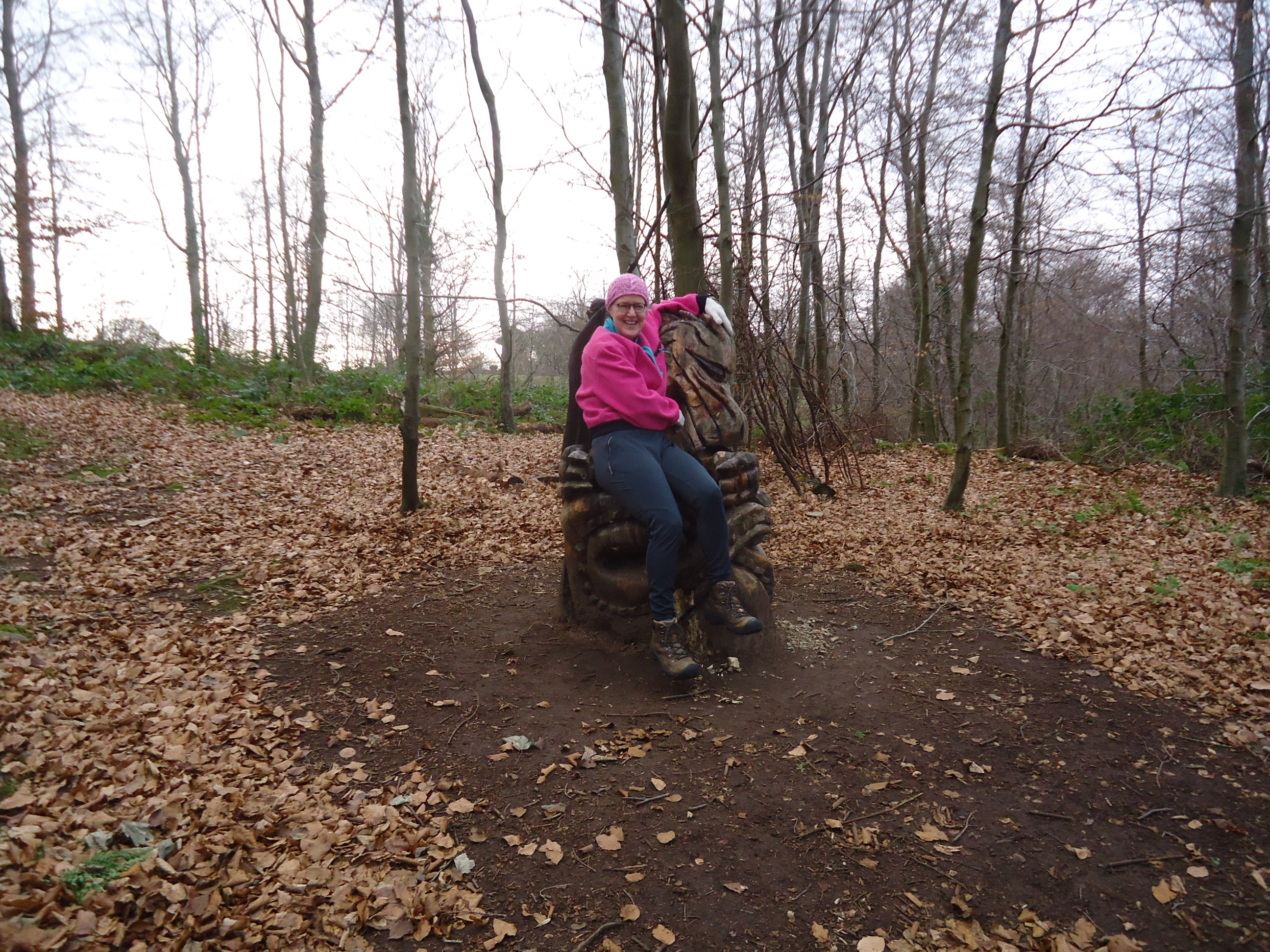 This is me posing with a carved dragon. There were random carvings through Minnowburn Woods--a reserve bordering Lagan Meadows that I’d never visited before. Which is another point of hiking groups--learning about secret spots.