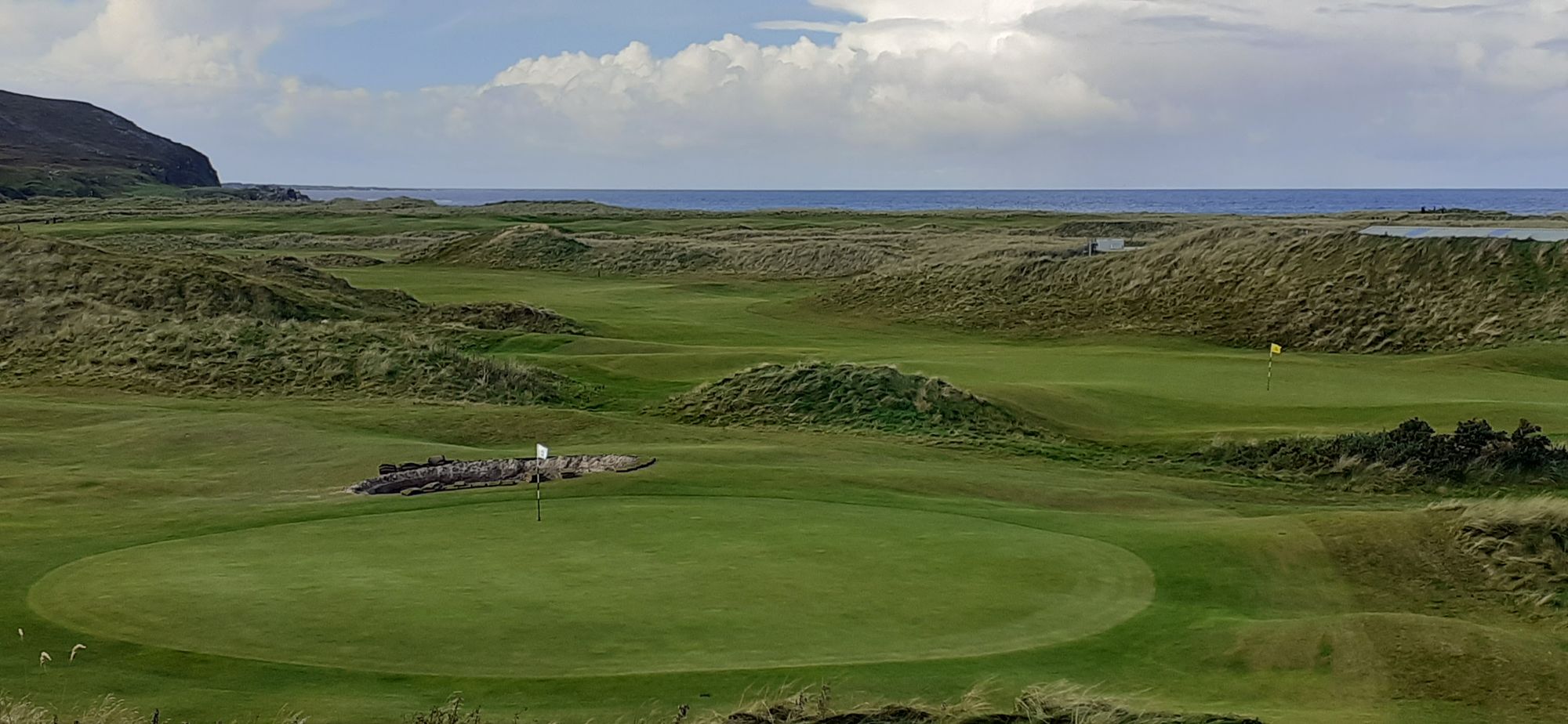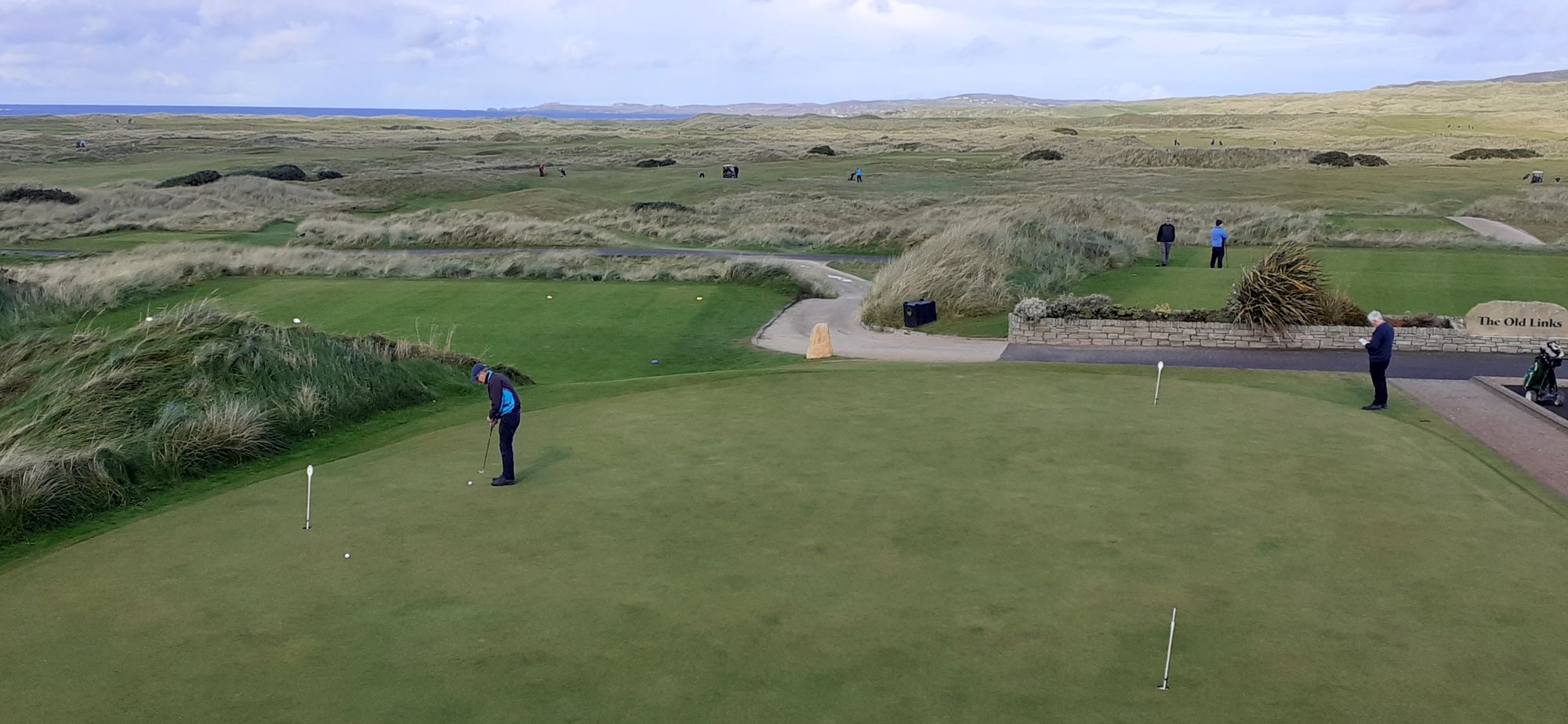 The golf course is dunes and ocean. There were 250 men out today in the senior cup for men from Donegal. Also a busload of Americans. I brought my clubs with Ann's encouragement (Ann is my friend and the daughter of mom's friend, Peggy O'Dwyer). Ann said Peggy would like to play a few holes with me. We didn't in the end--I don't think Ann liked her chances with getting three senior citizens in and out of buggies on a busy day at Ballyliffin. I was mainly eager to get back to Paddy in the car. I don't like leaving him in the car, but the alternative was 6 hours alone in the cottage.