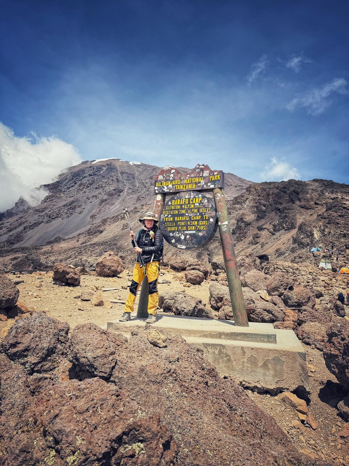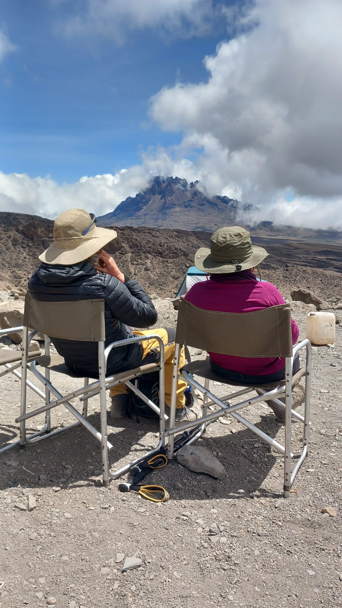 Last night was warmer than expected so I slept well. I was also able to eat more last night and this morning. Today we climbed another steep ridge in a region called alpine desert – very barren. Up a second steep ridge to Barafu camp, from where the summit hike begins. We had a view of a nearby mountain, Mawenzi.