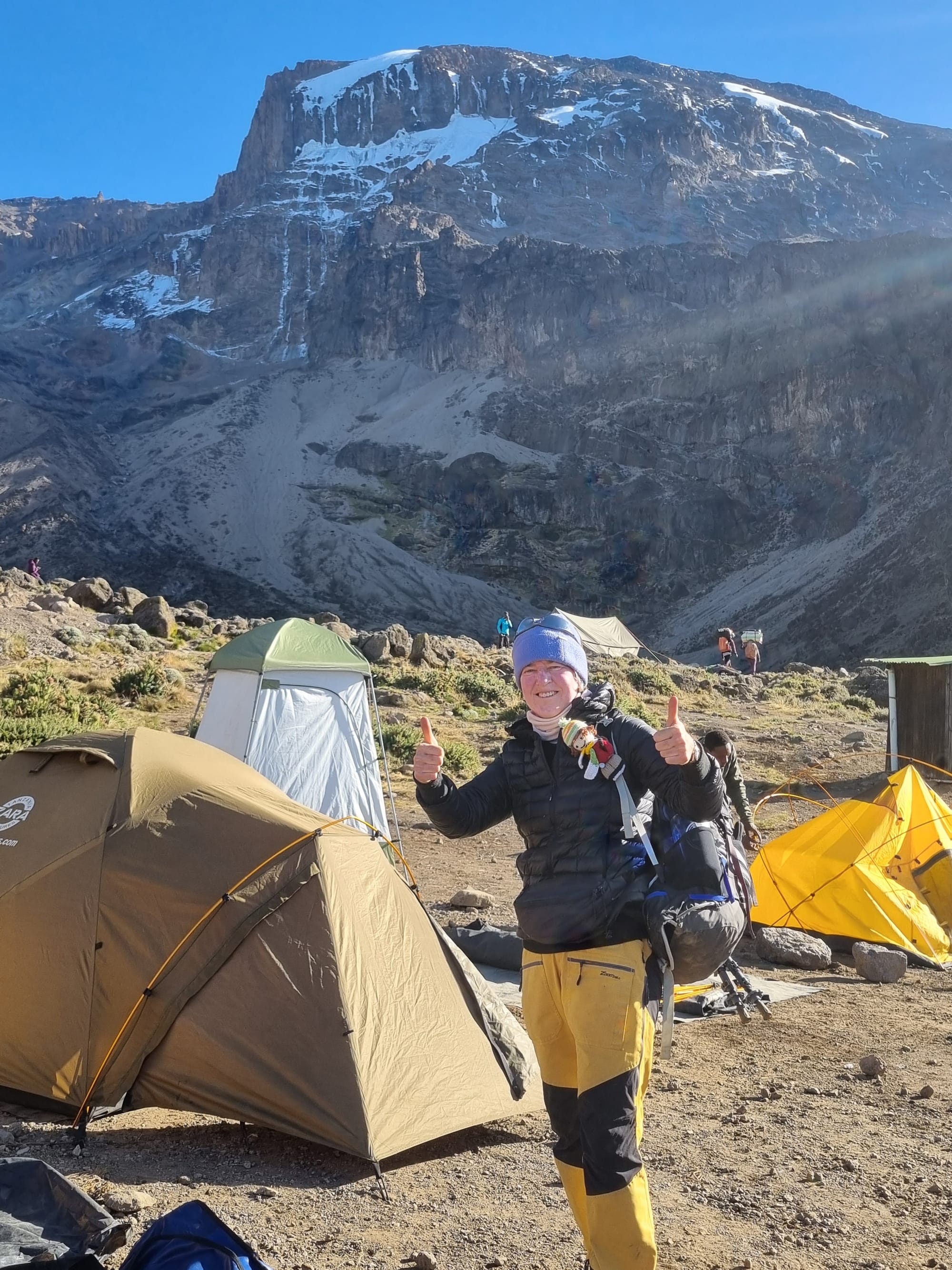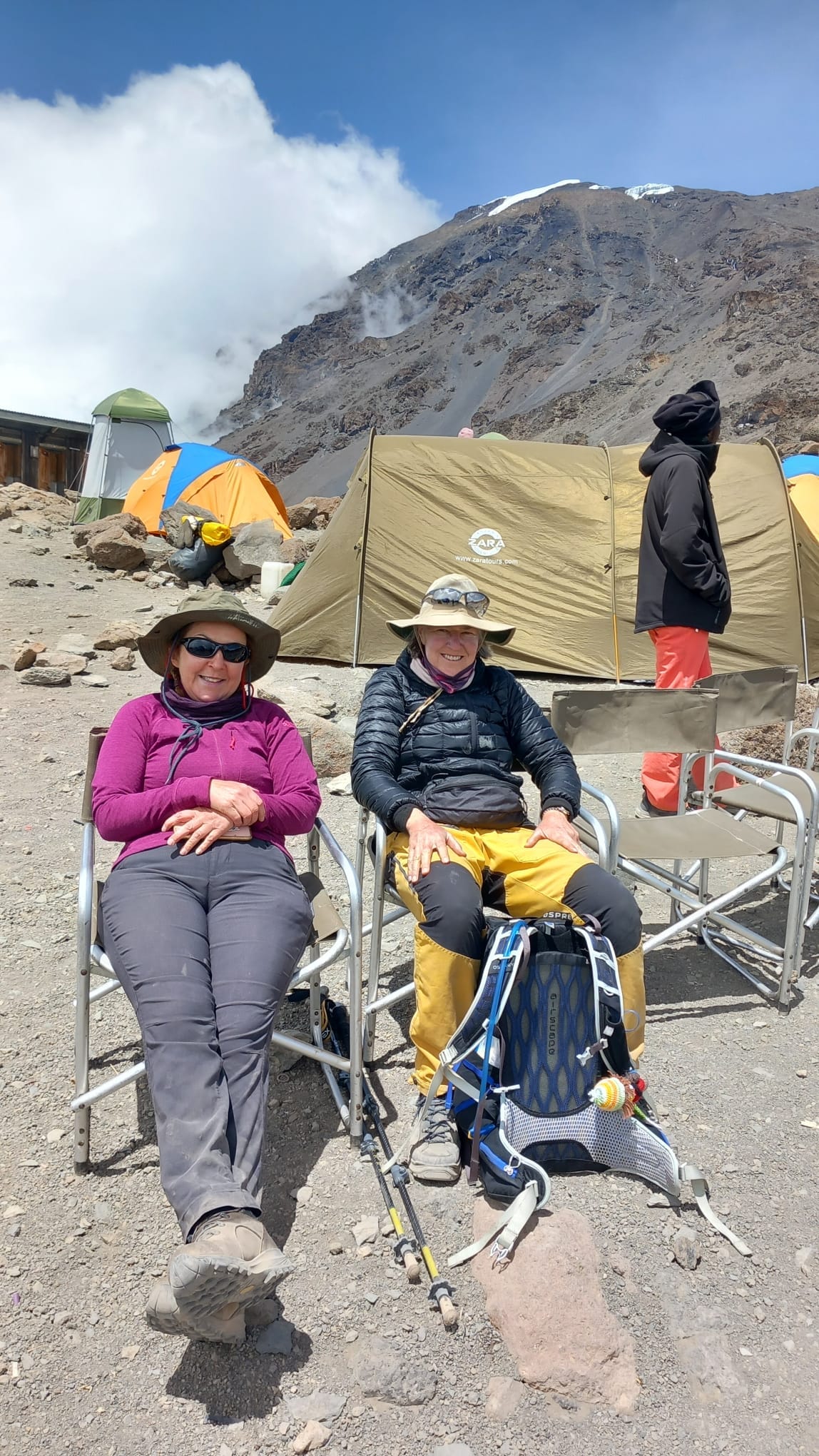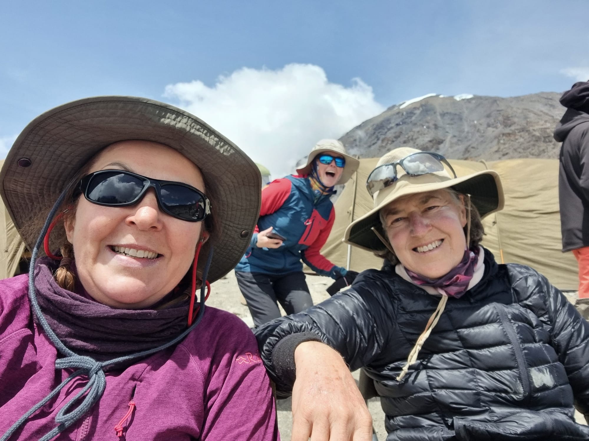 We took full advantage before going to our tents to repack for summit night – i.e. get all our warmest clothes together. Below we are photo bombed by Karen's tentmate Sharon, a gifted artist.