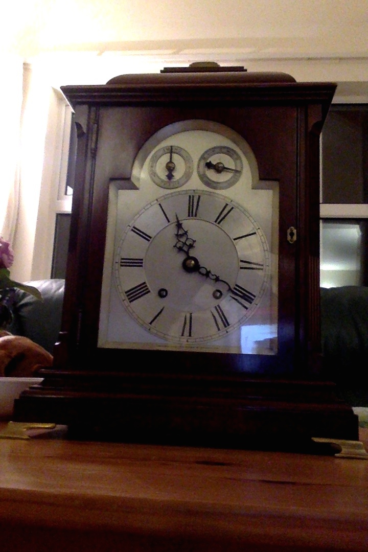 My trip was made more stressful by my traveling companion. In my carry-on bag, swaddled in a new set of sheets and a blanket, was the Victorian clock below, which my parents bought in Derry in the 1970s. My parents bought lots of clocks when they lived in Ulster and my mom is OK with me repatriating one of them.