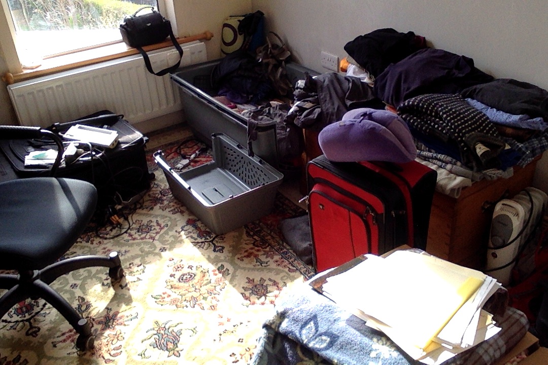 I'm in the middle bedroom working on commentaries and this is what it looks like. I usually require total order before writing. But I had to give that up.