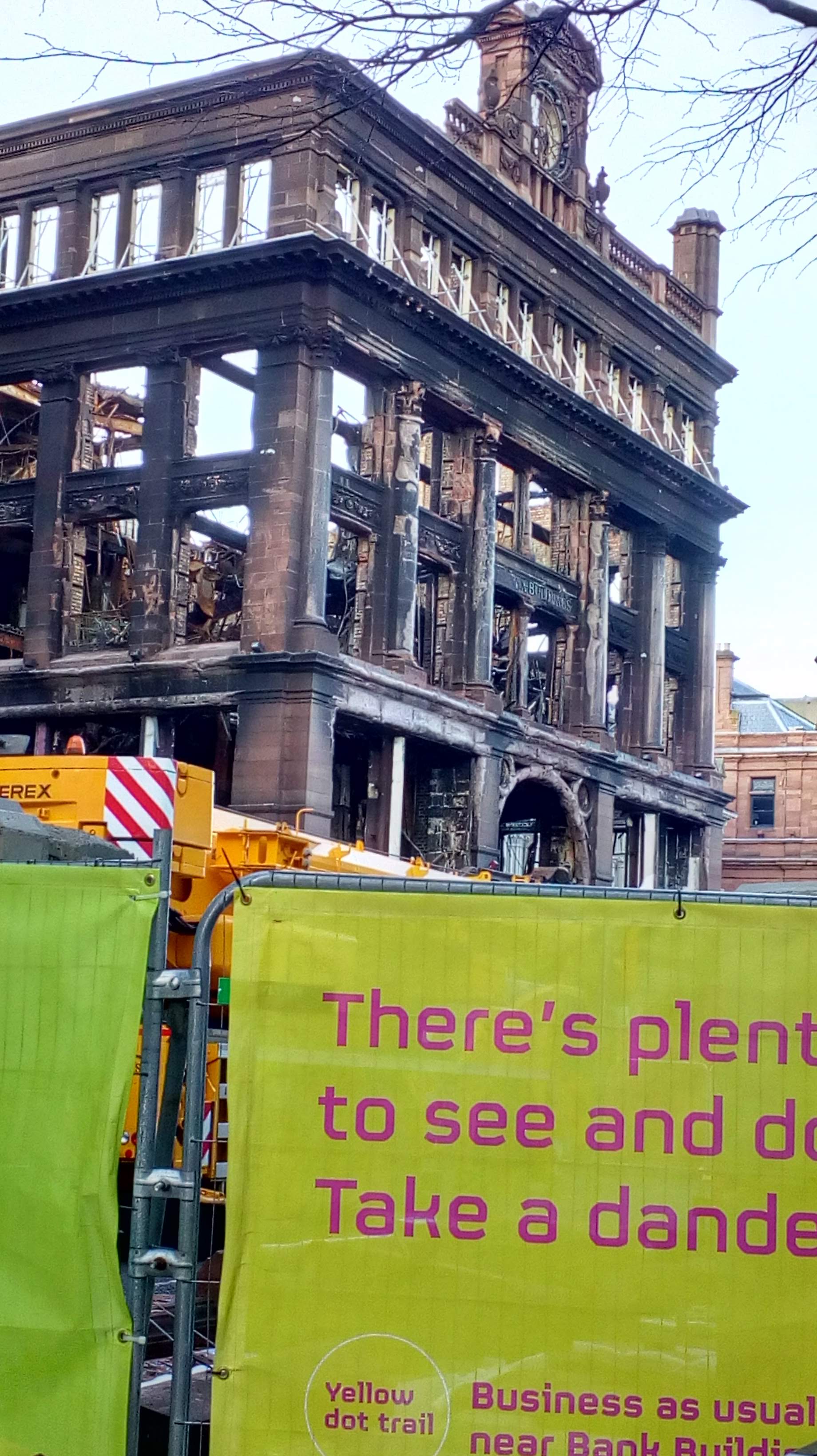 After a short breather at home I went into town to go to Christmas markets #4 and #5--St. George’s Market and the Continental Market (I’ve been to Spittalfields in London, Ards craft show in Newtownards and the Void artist collective in East Belfast). I had really good tatas bravas and bought a few more lovely Christmas presents. But the crowds made me claustrophobic and I was glad to get home. Before doing so, I went by the Bank Buildings, site of a horrible fire.