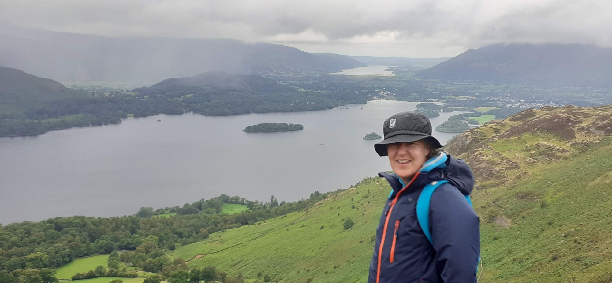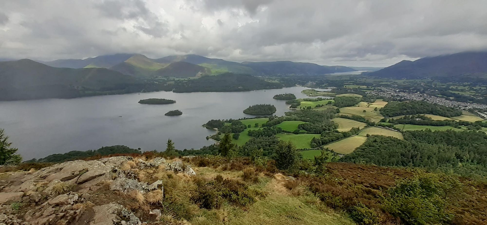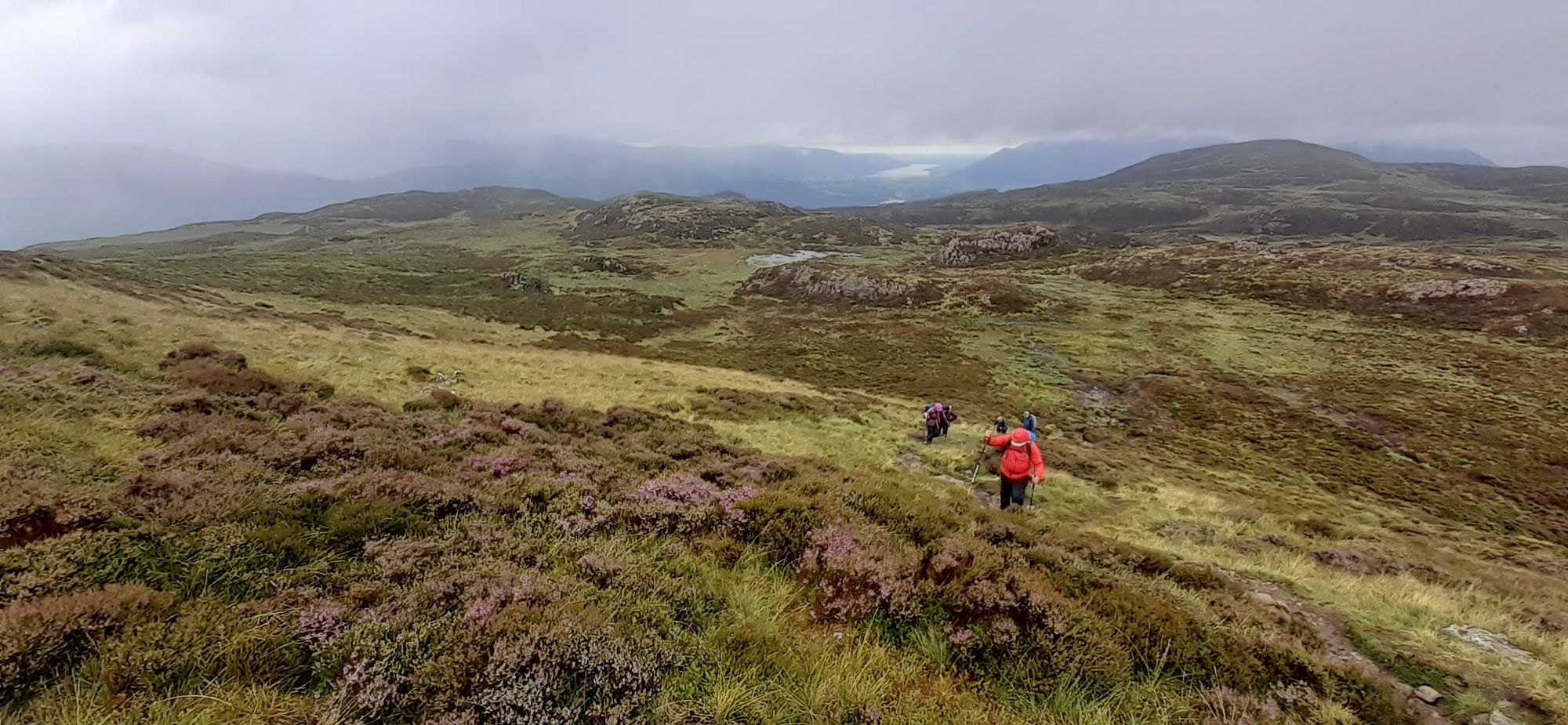 Today I did another option 3, despite weather that was at times grim. We started with a climb above Derwent Water, with Keswick seen on the right.