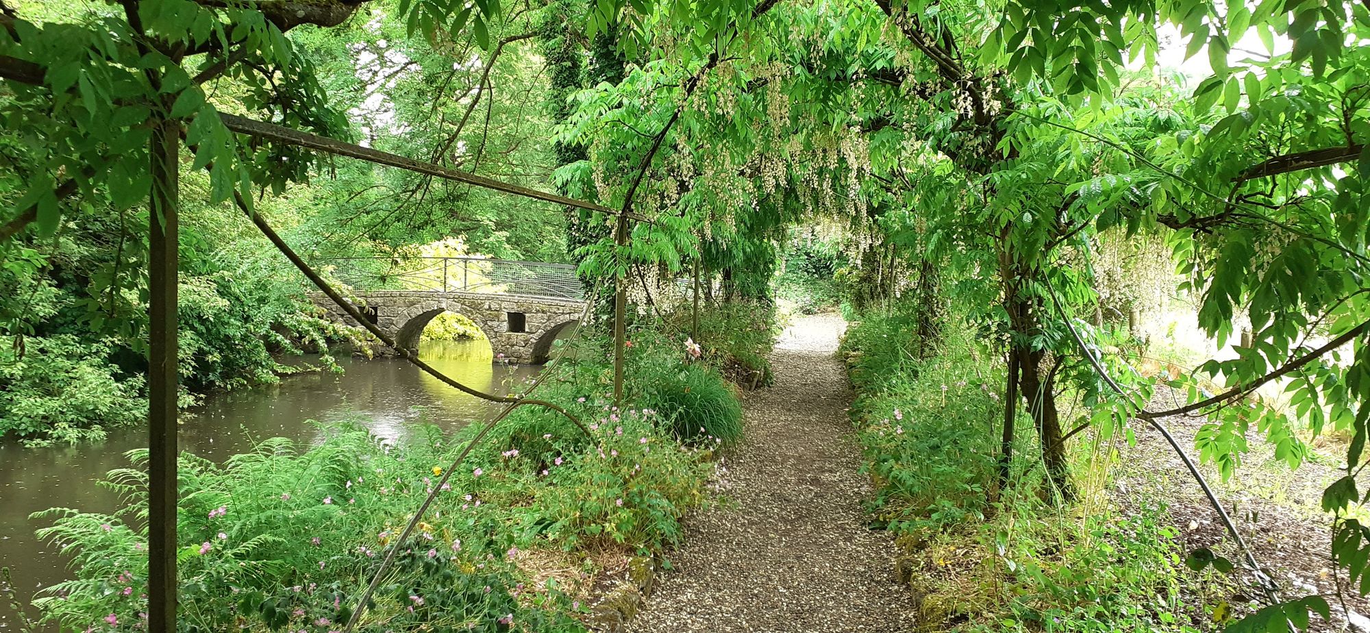 There was a lake covered with lily pads, a wide river, formal gardens and a lovely nursery and cafe. Ann knows this part of the world well so she was our tour guide. Below a laburnum arch.
