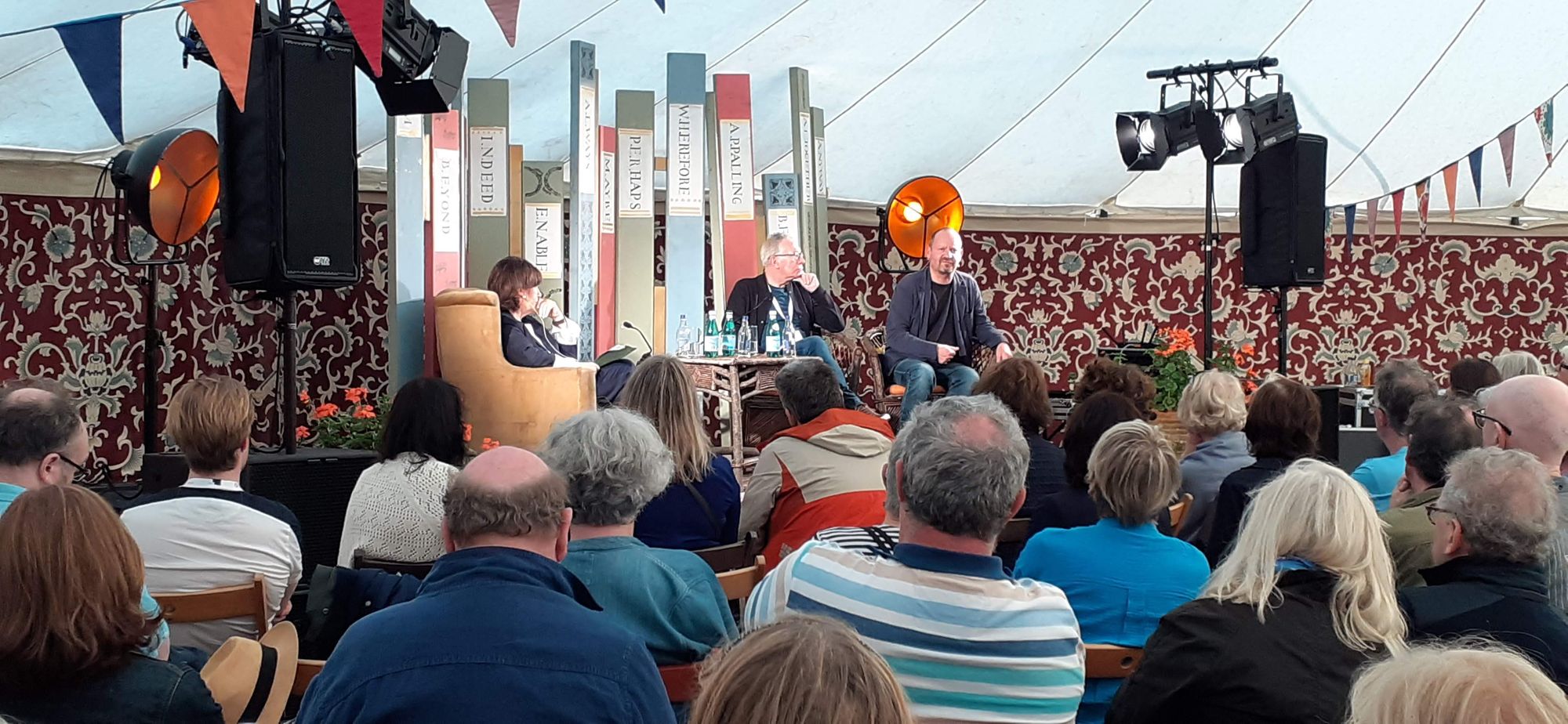 Sands (on the right) is a historian with a formidable back catalogue. O'Toole is a brilliant writer and thinker. It was like lightning under a tent. O'Toole writes a lot about identity. While he thinks of himself as a European, he would first identify as Irish. However both his children have married partners from other European countries and would not have strong Irish identities. With Anglo-French (or Franco-English?) parentage, Sands spoke eloquently about the difference between English and British and European identities. They discussed the Ukraine (half European, half Asian), Turkey, and other countries that have sought EU membership. How the EU became complacent and allowed Hungary and Poland to dilute EU democratic norms. How the EU will need to increase military spending, particularly if (God forbid) Trump is re-elected and withdraws US support for the Ukraine.