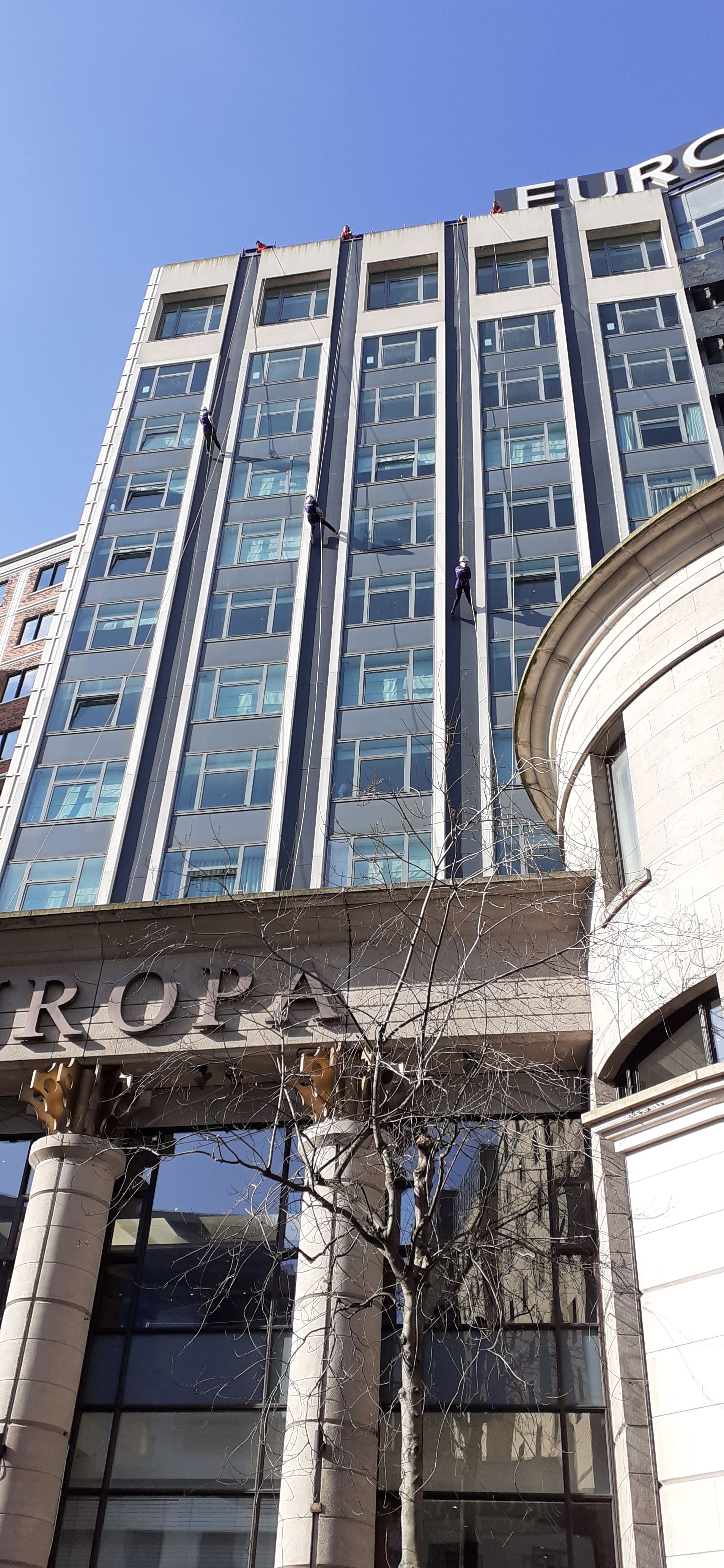 The following day I went into the city in the morning to watch my neighbour Christine abseil down the side of the Europa as part of a fundraiser. Here's Christine: