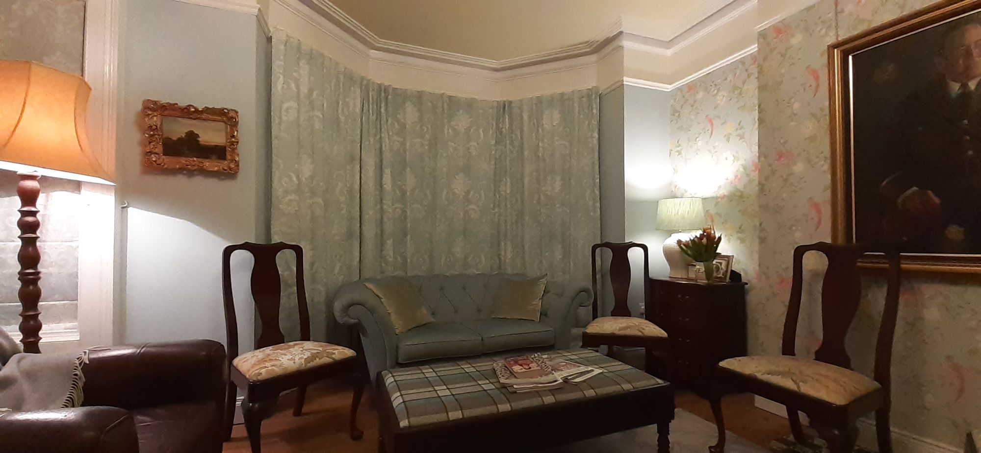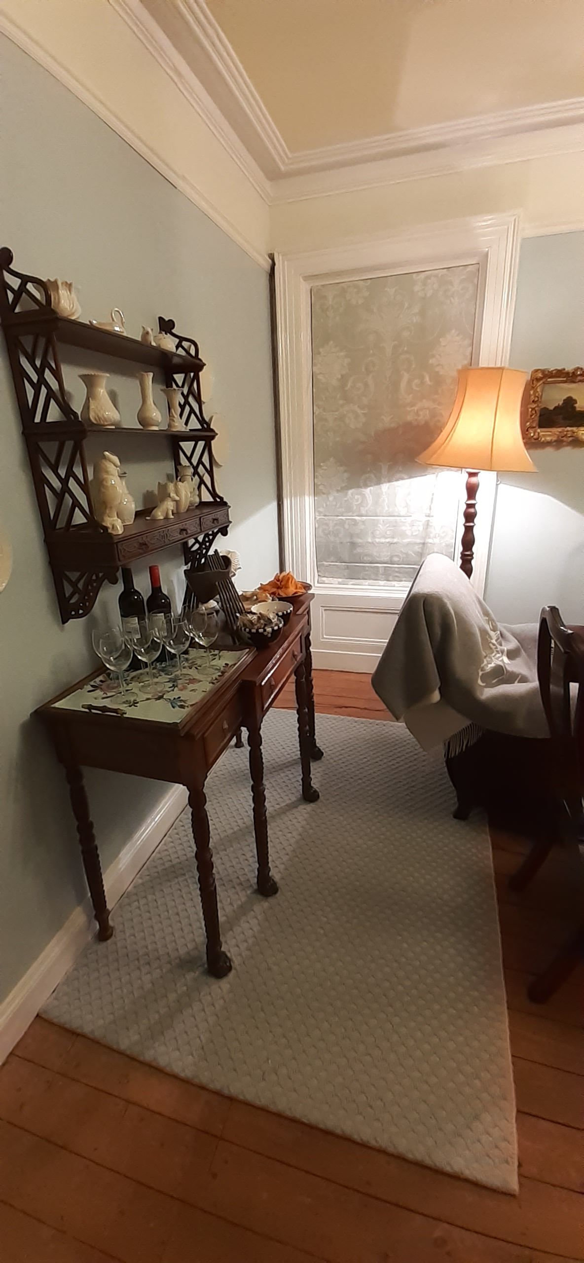 On Monday night I hosted book club. We met in the upstairs lounge, which now has curtains and so is better insulated. The lighting here isn't doing the room any favours, but you get an idea of the final result.