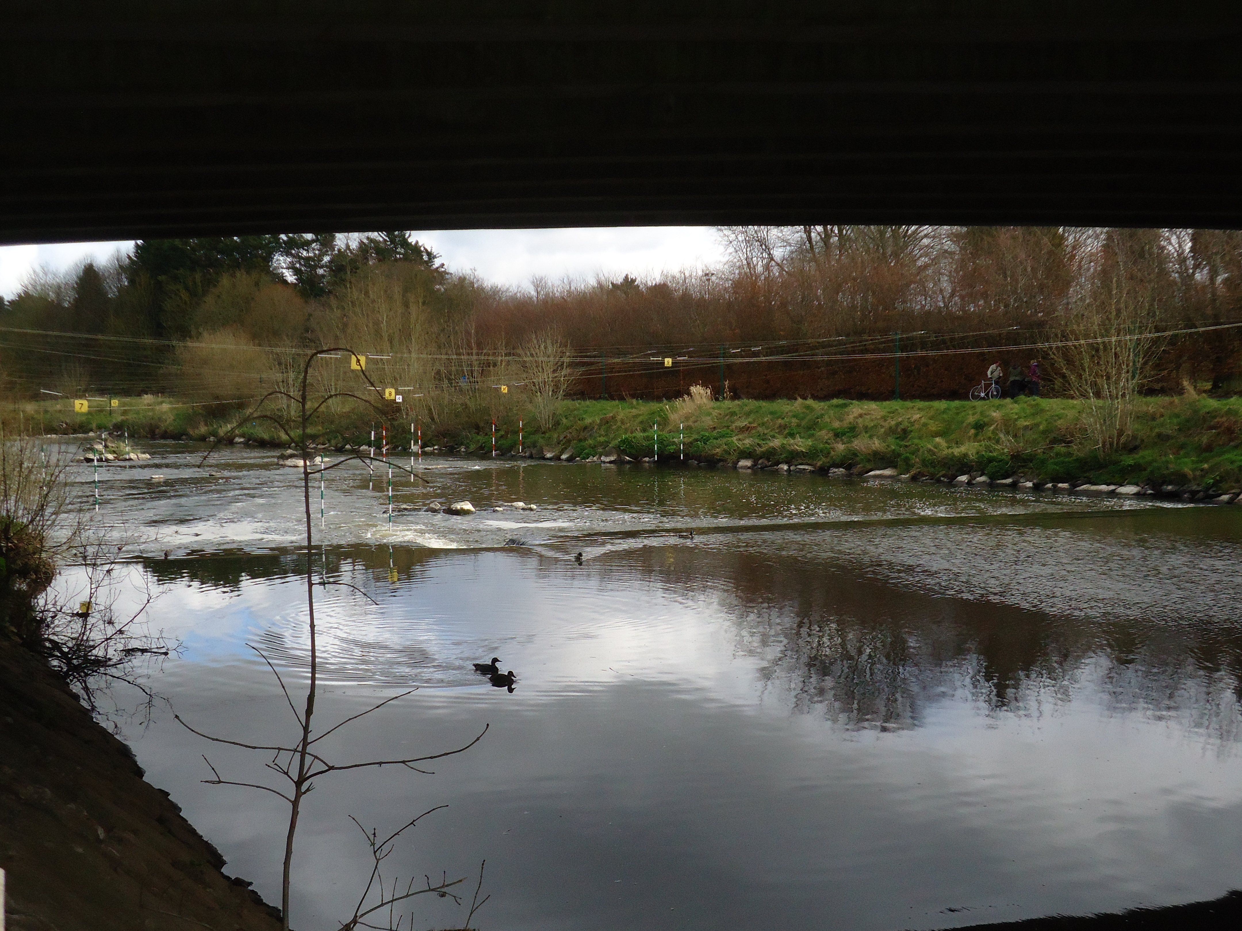 To my left is the bridge carrying the ring road (a beltway around East Belfast). Underneath it, you can see gates for kayakers who run the rapids here.