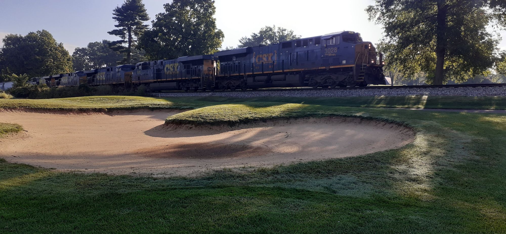The following day I played at mom's old club with our friend Sandy. The course is along the Ohio River – a train went by on one side of a fairway and a barge went by on the other!