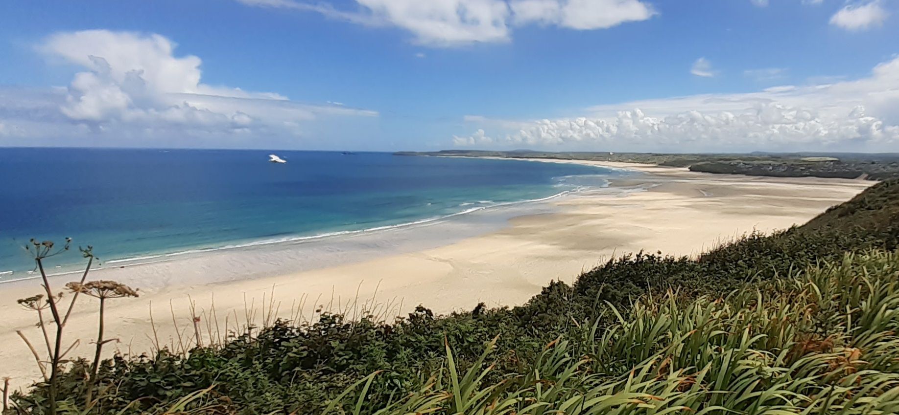 Today's description: In Summary: Head up to Knill’s Monument, then drop down to join the coast near Lelant church. We follow the coastal path back to St Ives, passing through the dunes beside Porthkidney Sands, Carrick Gladden and Carbis Bay.