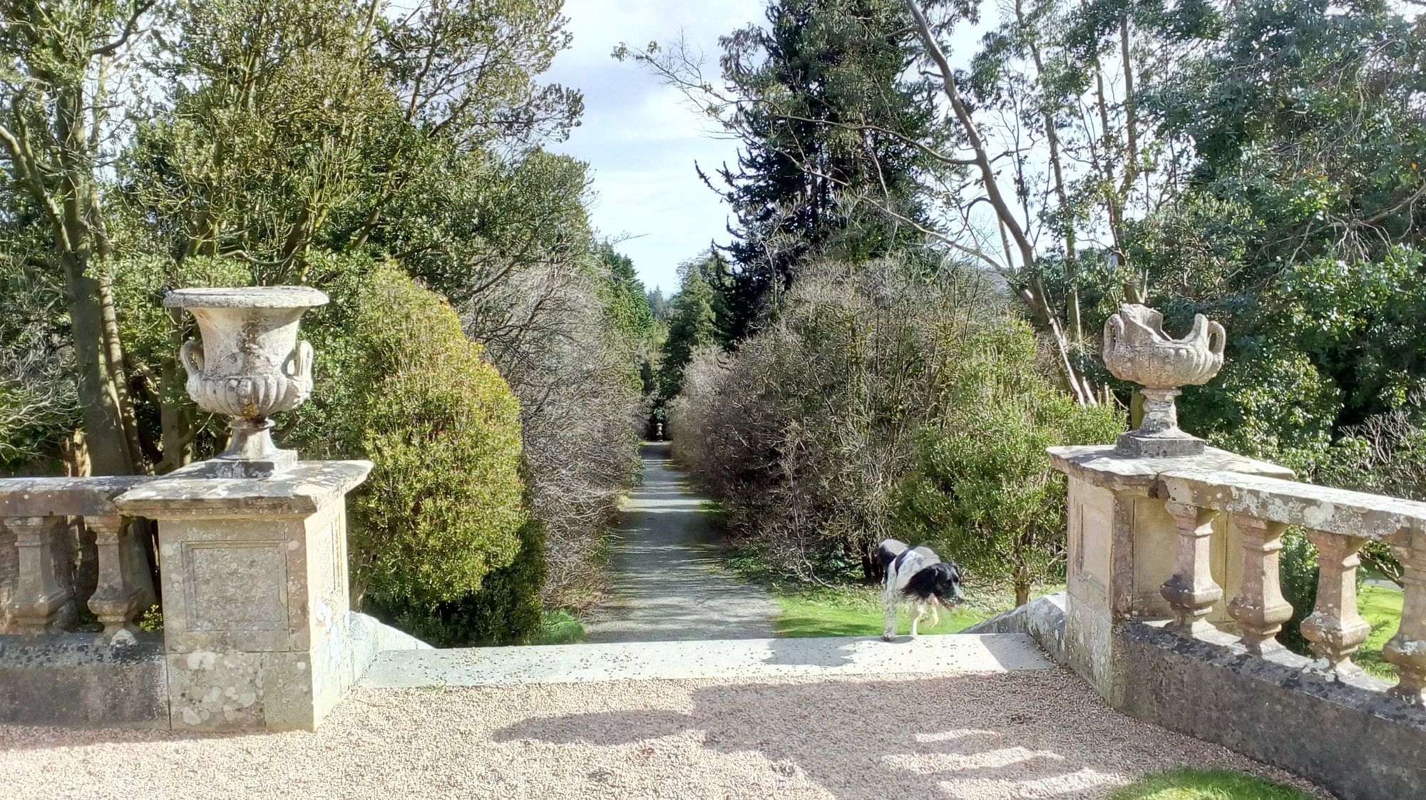 Paddy tearing about the place. One of the lovely things about the mild climate here is it is green all year round and blooms arrive early.