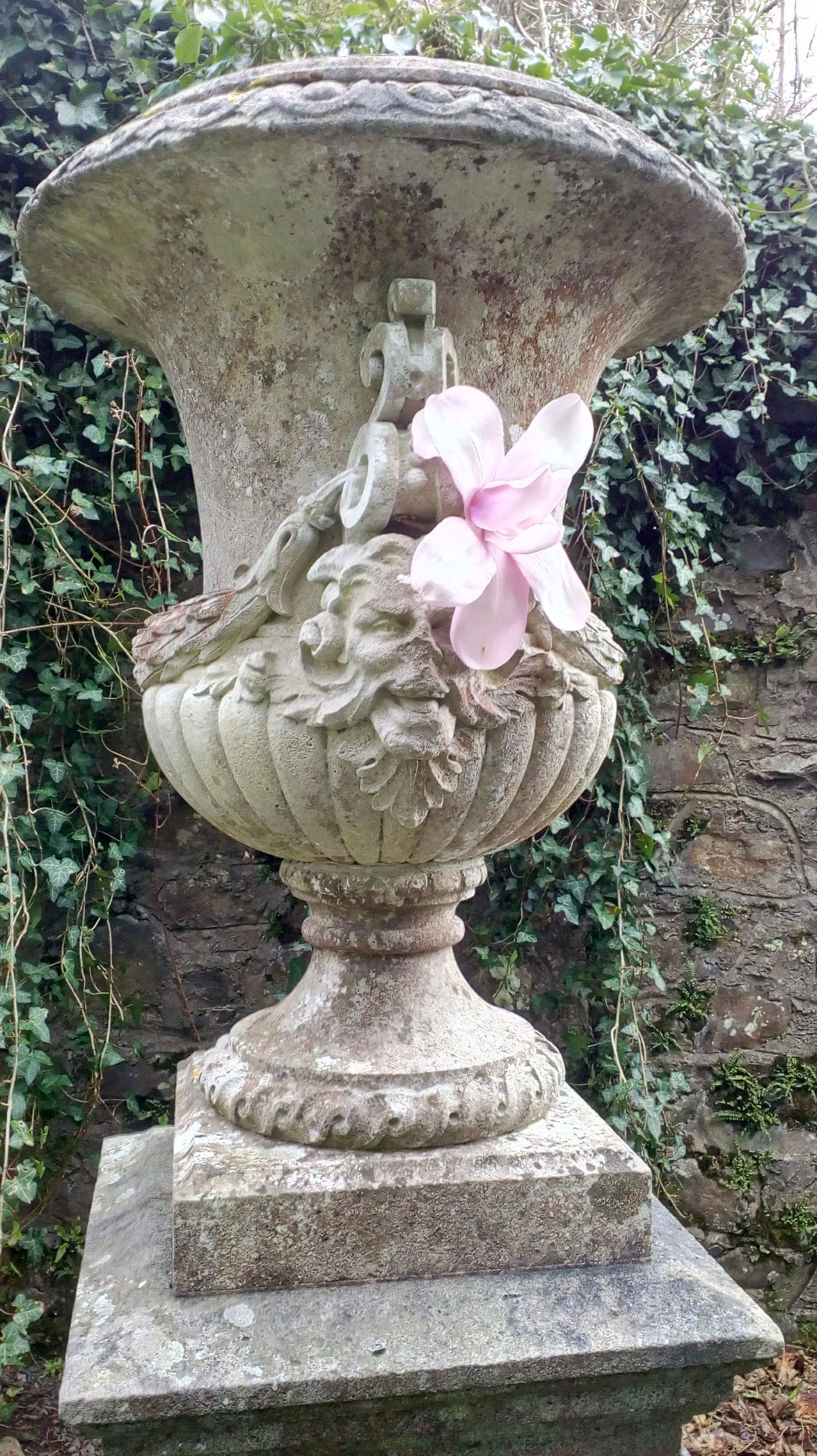 The gardens were multifaceted and full of blooms--tulip magnolias for instance, and the beginnings of peonies. In the photo below, Paddy kept looking at me for permission to go into the fountain. He adores water. He did not get permission and moved on. Such a good wee boy.
