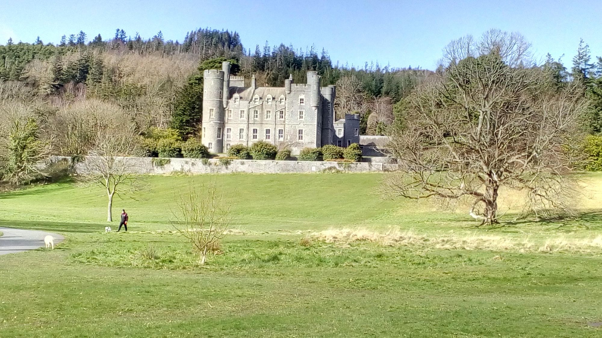 Today I went for a 7 mile hike with my old hiking group--again the fruits of being back in rude health. Paddy probably did three or four miles to my one mile. Plus he went swimming. Here's the castle.