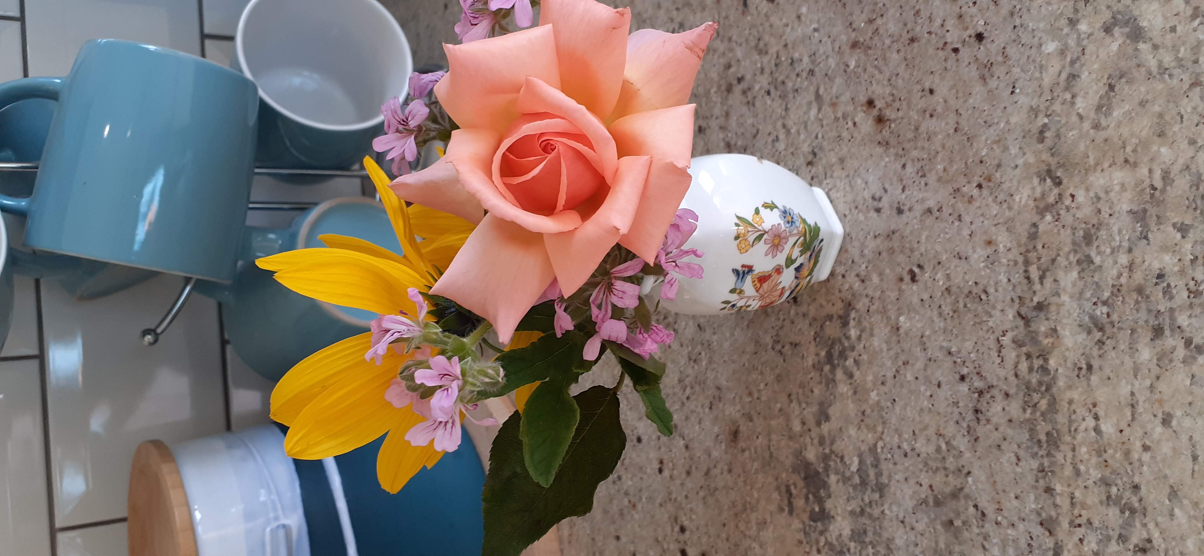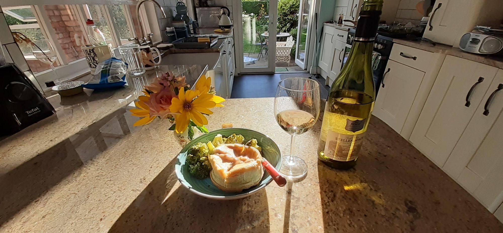 Although that vegan pot pie was out of the freezer--I didn't get organised to go to the store and make something from scratch. I had fresh flowers every day from my garden.