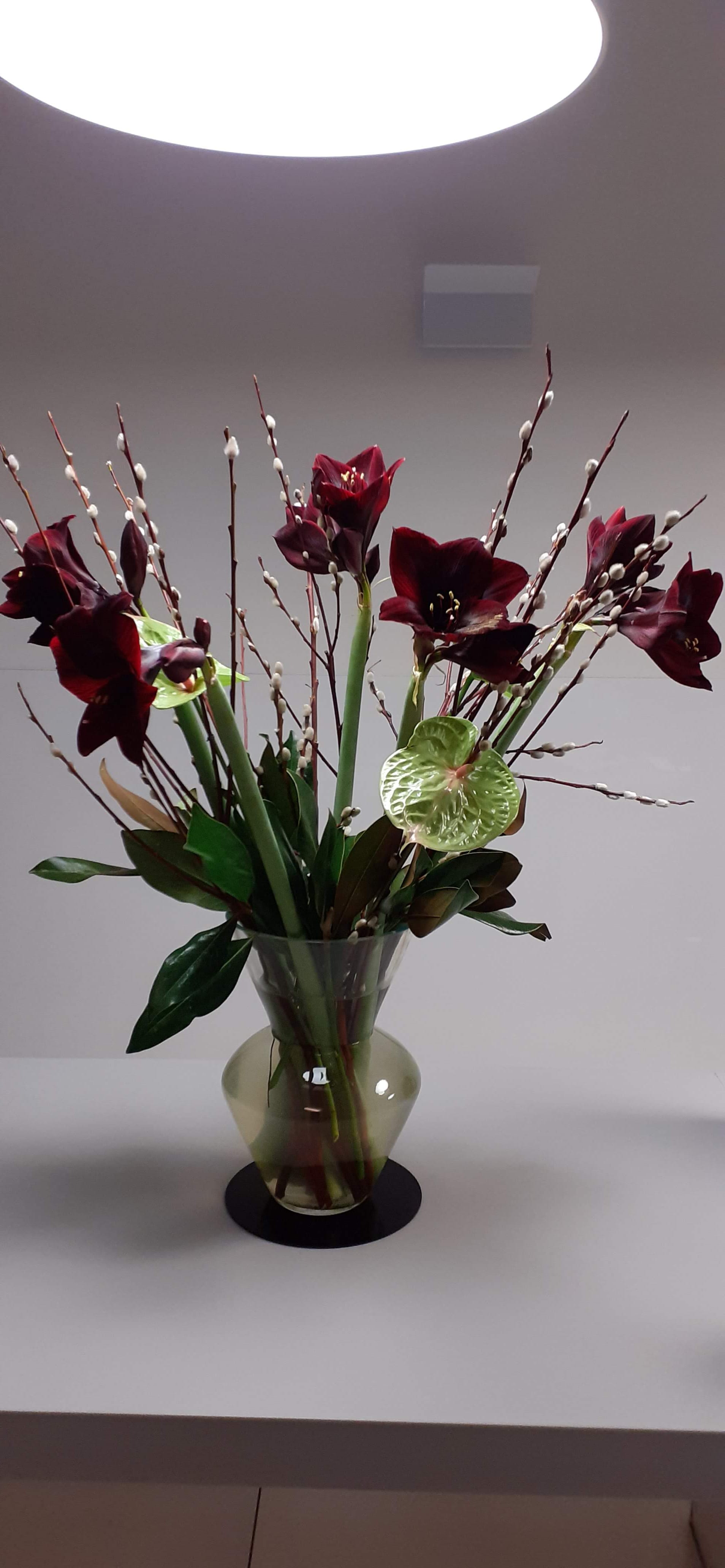Saturday afternoon and Sunday, I did a lot of nothing. My London trip kind of caught up with me. And the wind and rain meant staying close to home. Below, an arrangement from the lobby in my London office building.