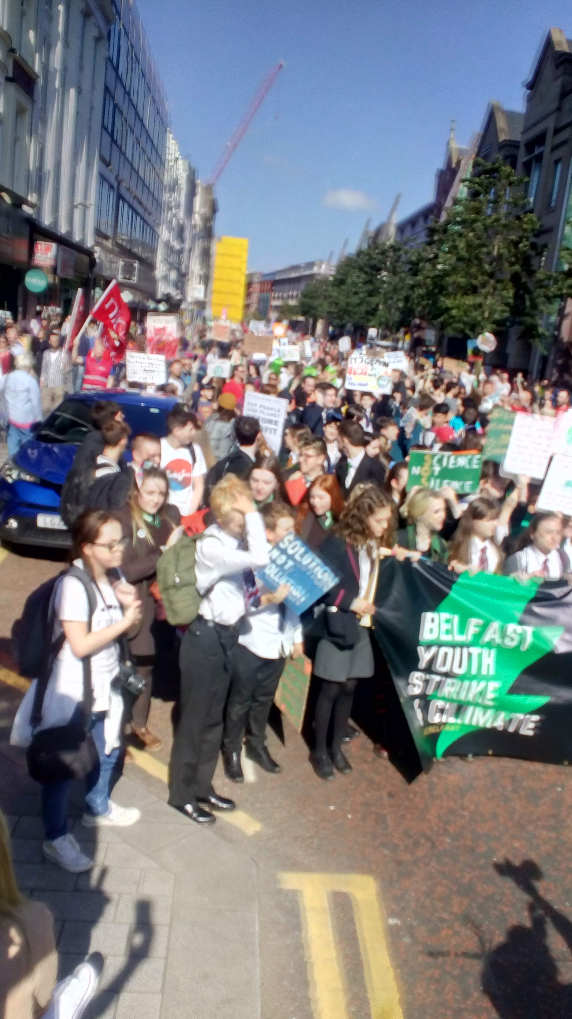 This is the main drag in Belfast. One of the youth leaders said they expected 300 people and got more than 4,000. Are the political leaders listening? The largest party in Northern Ireland, the DUP, doesn't believe in climate change. It's 'going for growth' economic strategy is to double down on intensive agriculture--because the amount of cow/pig/chicken shit pouring into our waterways isn't enough.