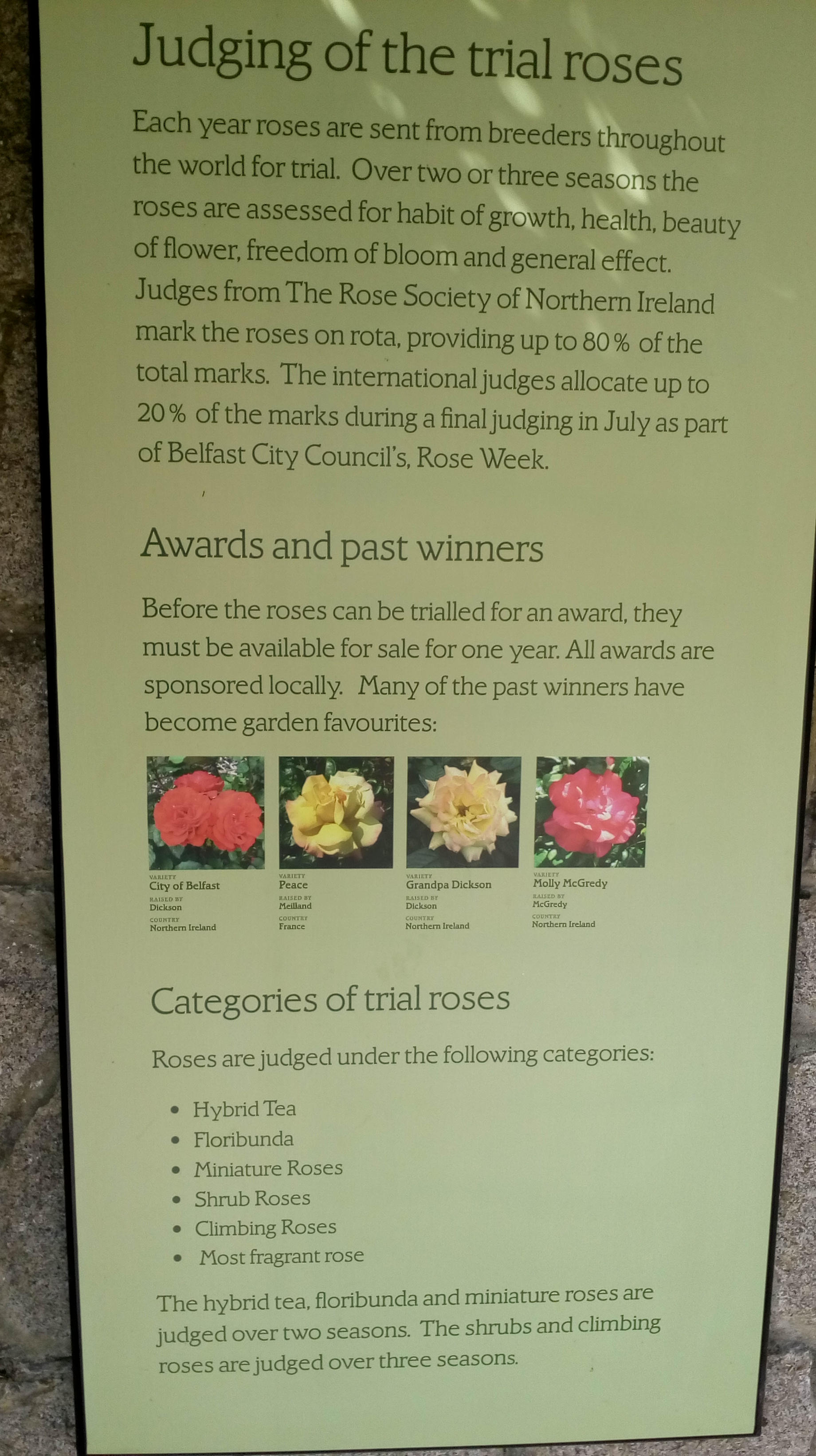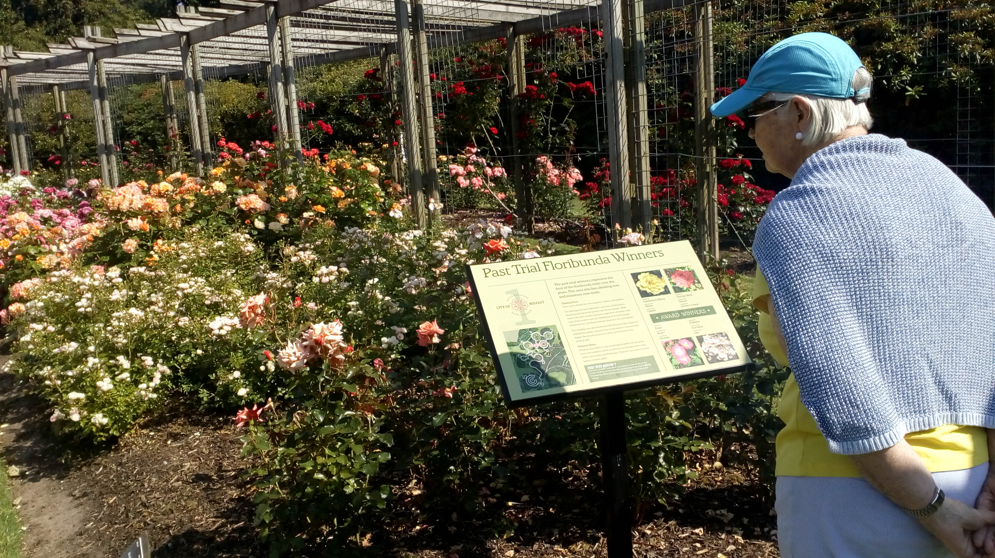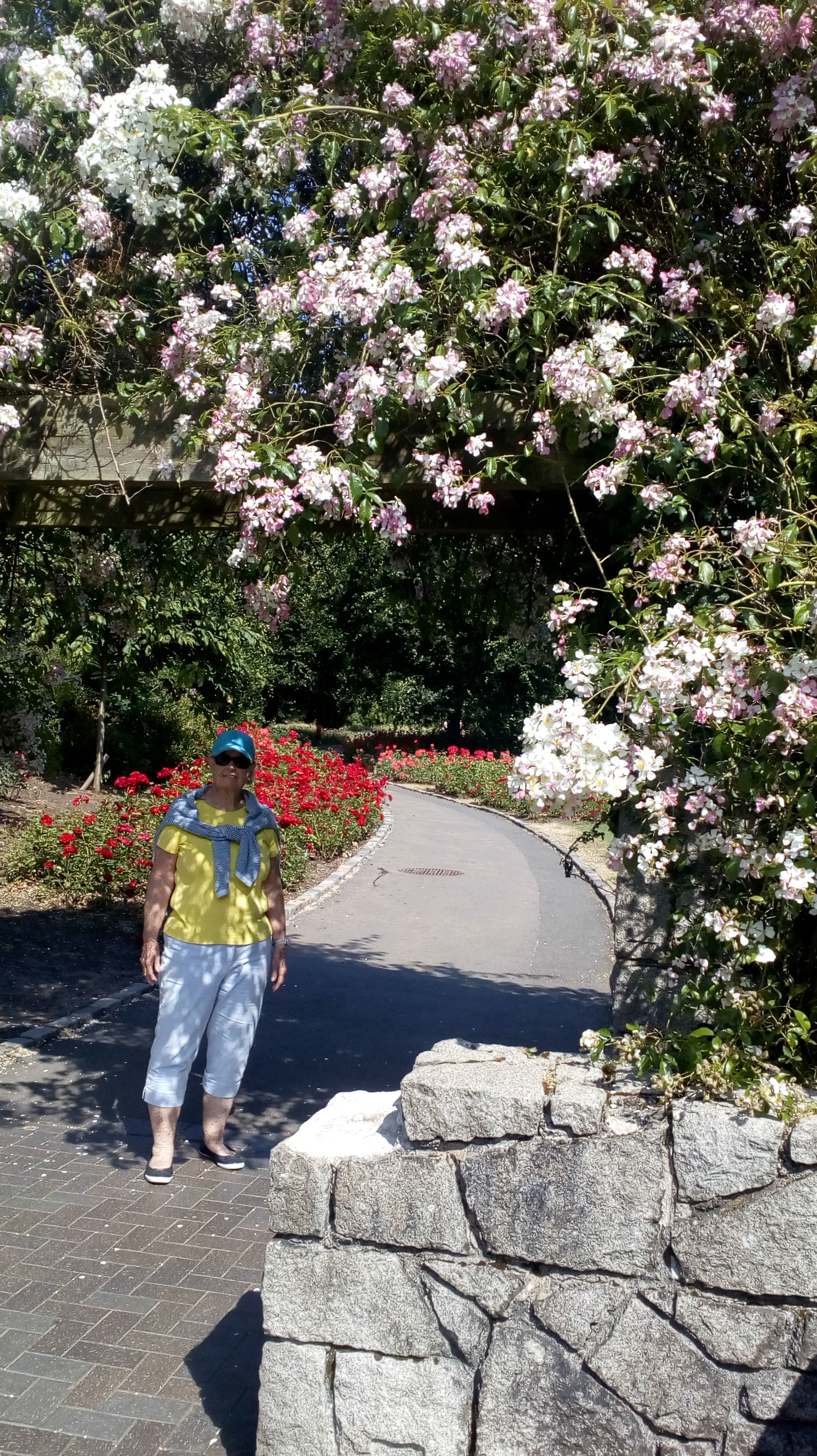 Then we visited Sir Thomas and Lady Dixon Park, an international trial garden for commercial rose breeders. Here’s mom at the entrance.