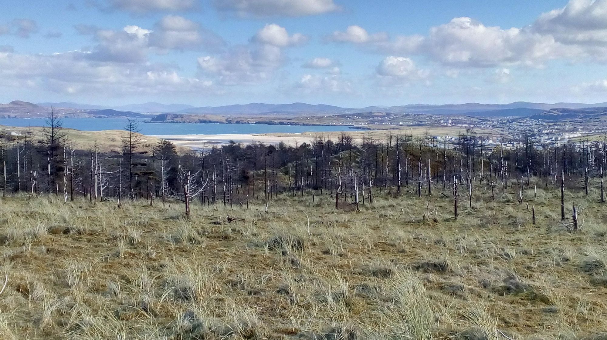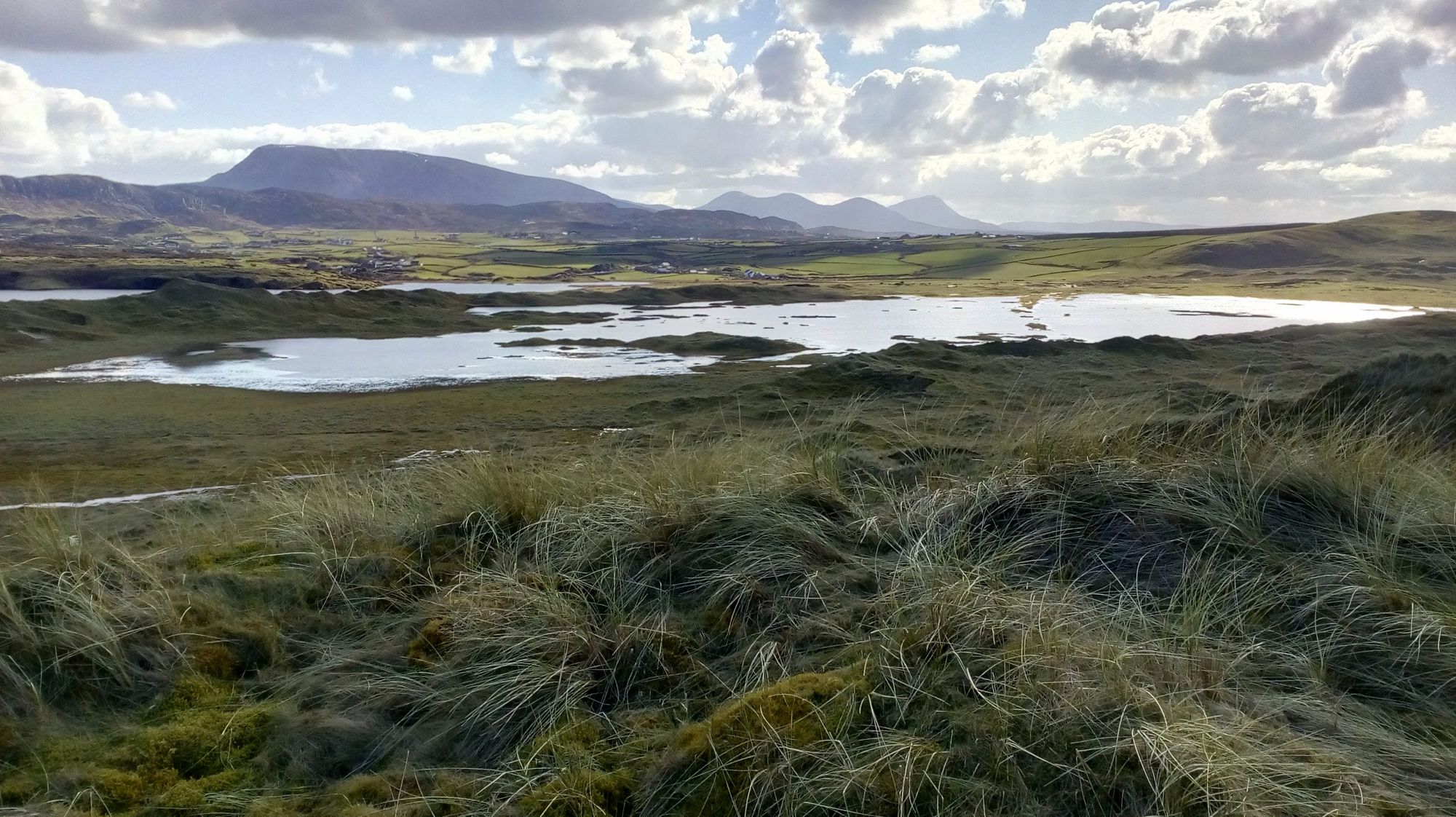 But having a getaway in mind meant I had a hard time settling into work this week. I took St. Paddy's Day off then worked Weds and Thurs. On Thursday I found out my friend Christine's place in Donegal was available. Spur of the moment I decided to bugger off to Donegal for four days. Friday morning I drove north nearly three hours--grinning almost the whole trip like an idiot--and dropped everything off at the house. Then Paddy and I did a loop hike near Horn Head, first through a forest then through high dunes. Here is a view looking back to Dunfanaghy.