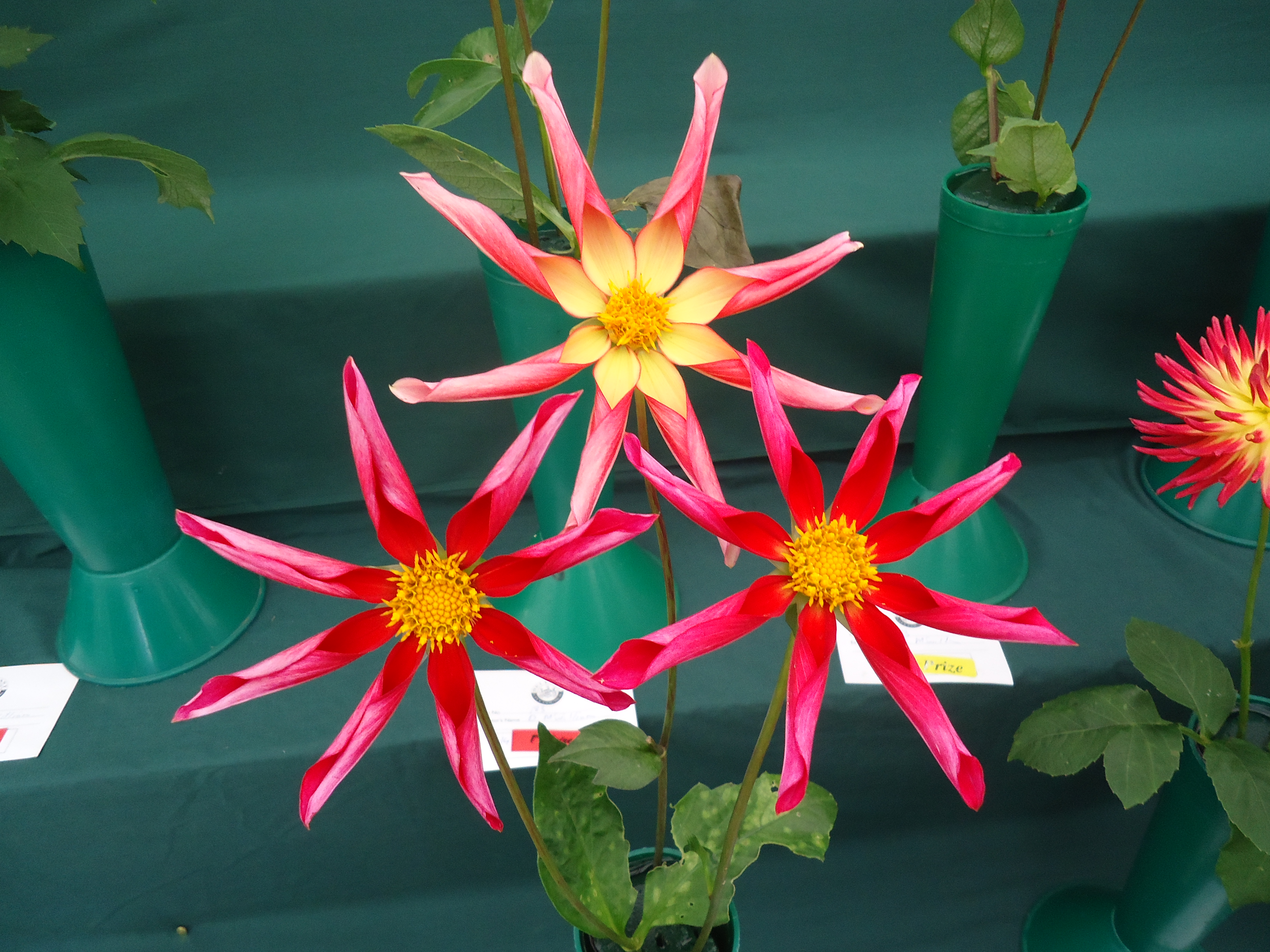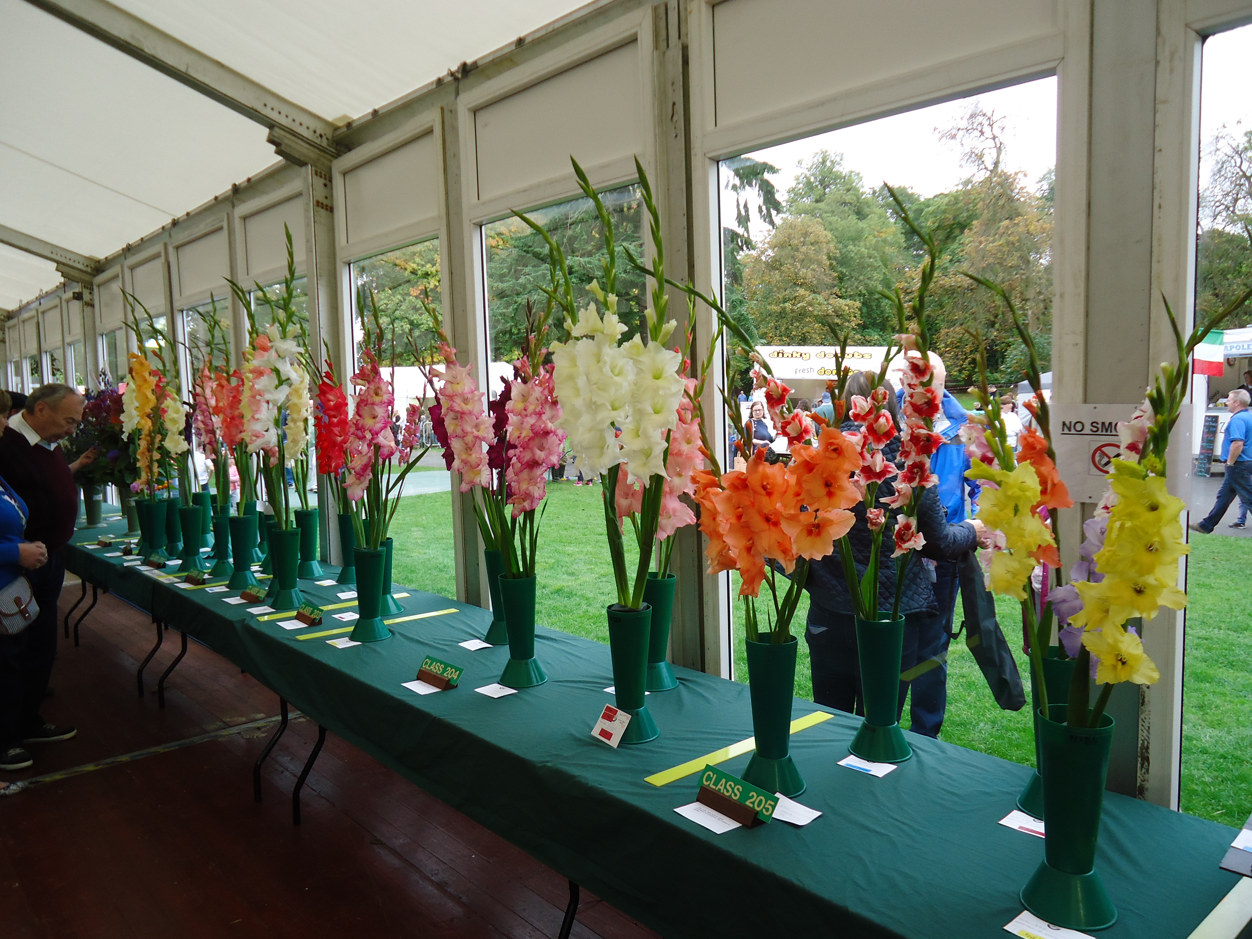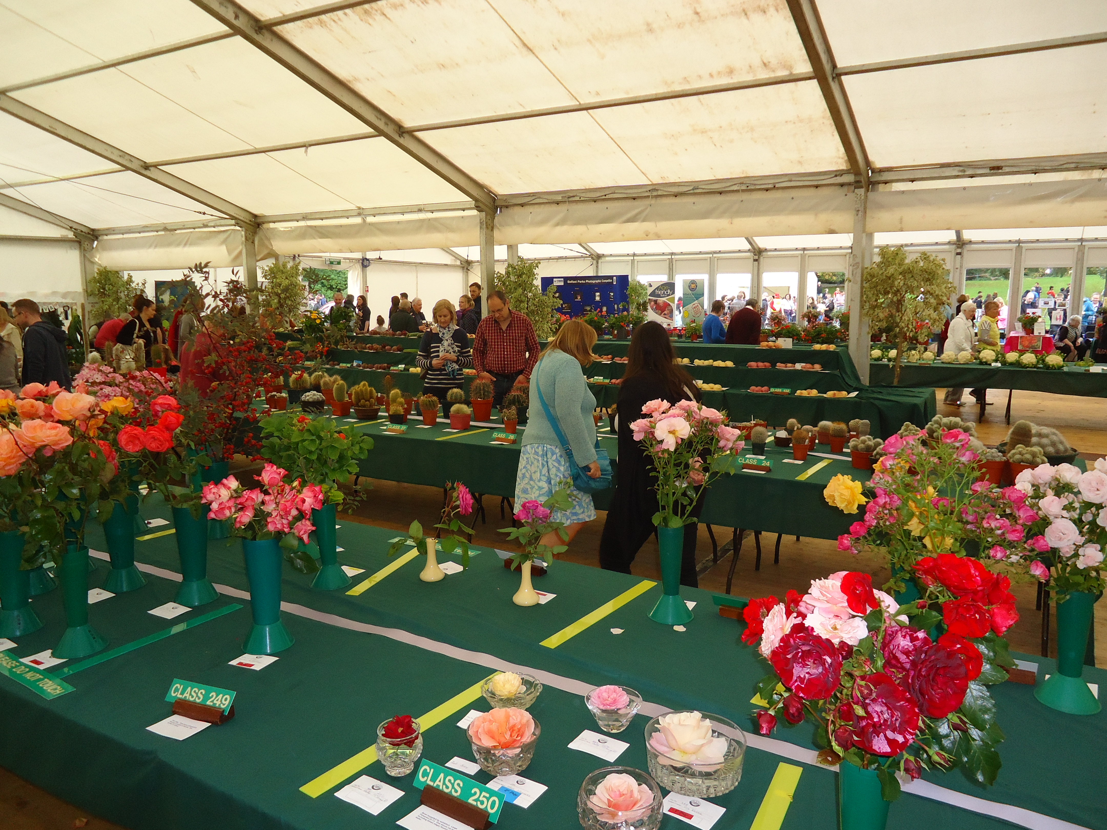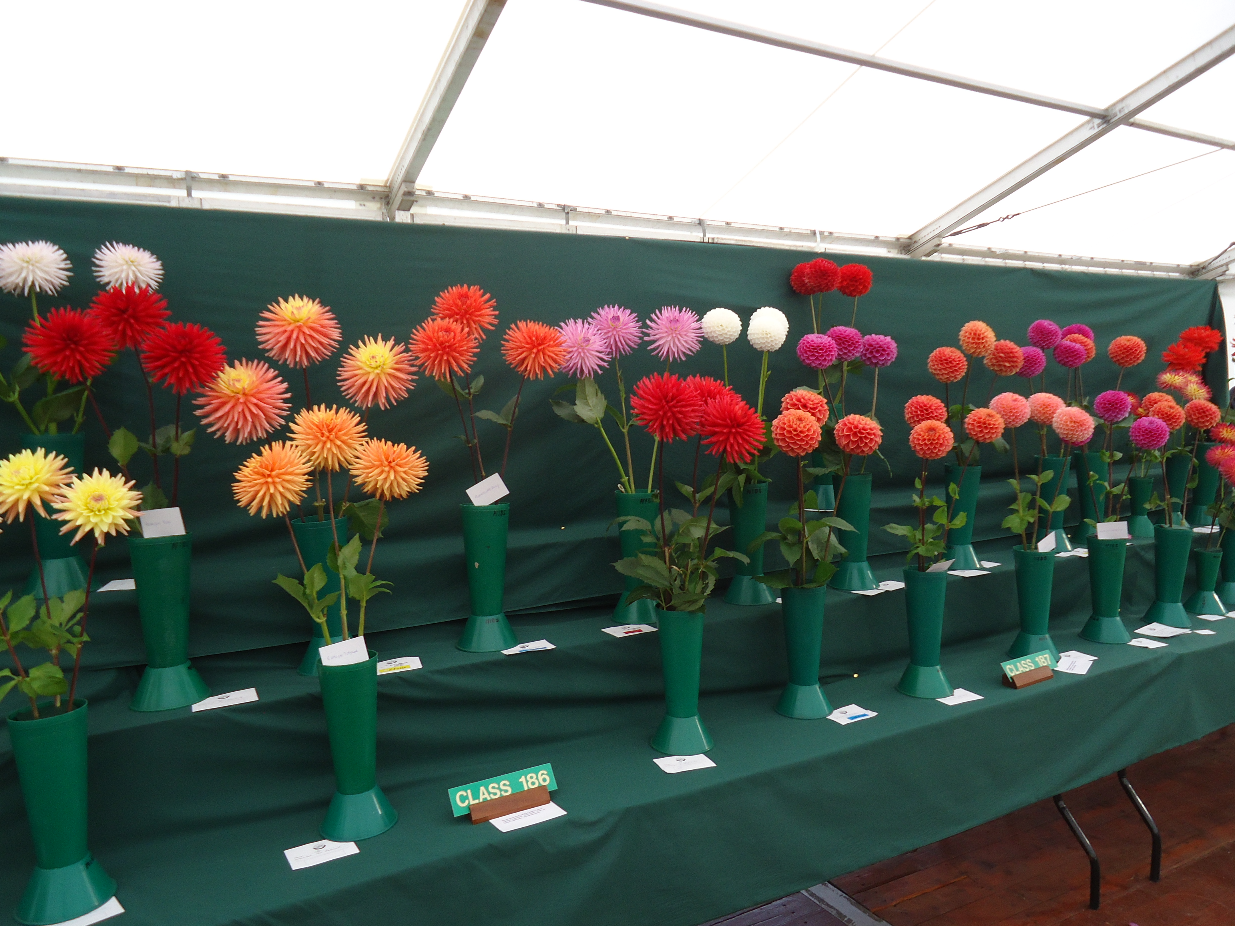 People compete for prizes for the best dahlia, glad, leek, flower arrangement, parnsips, etc.