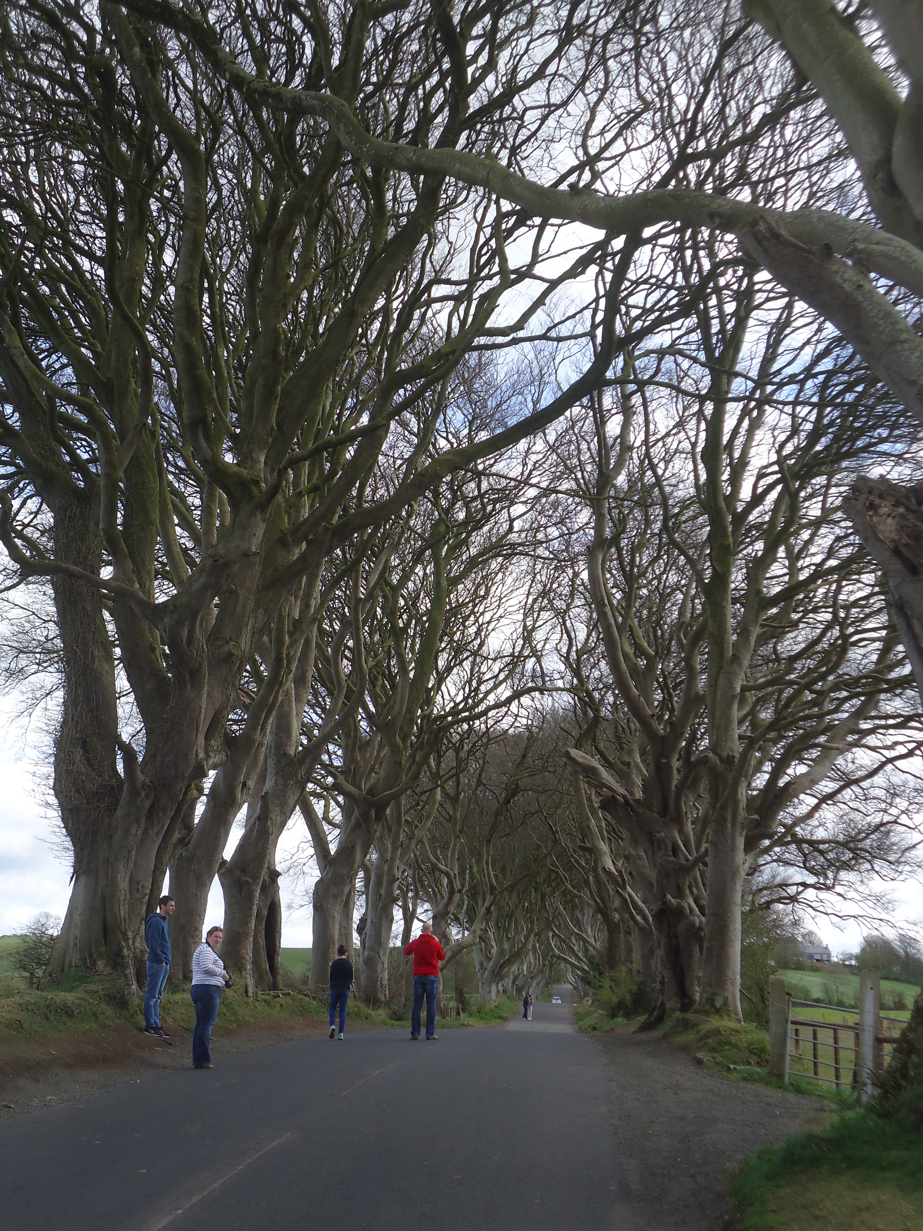 David’s sister Susan flew in today from Sheffield for a one-day visit. In making our way to the Antrim coast, we drove through the Dark Hedges, made famous by the Game of Thrones. I have seen spectacular photos of this road. Mine is not one of them.