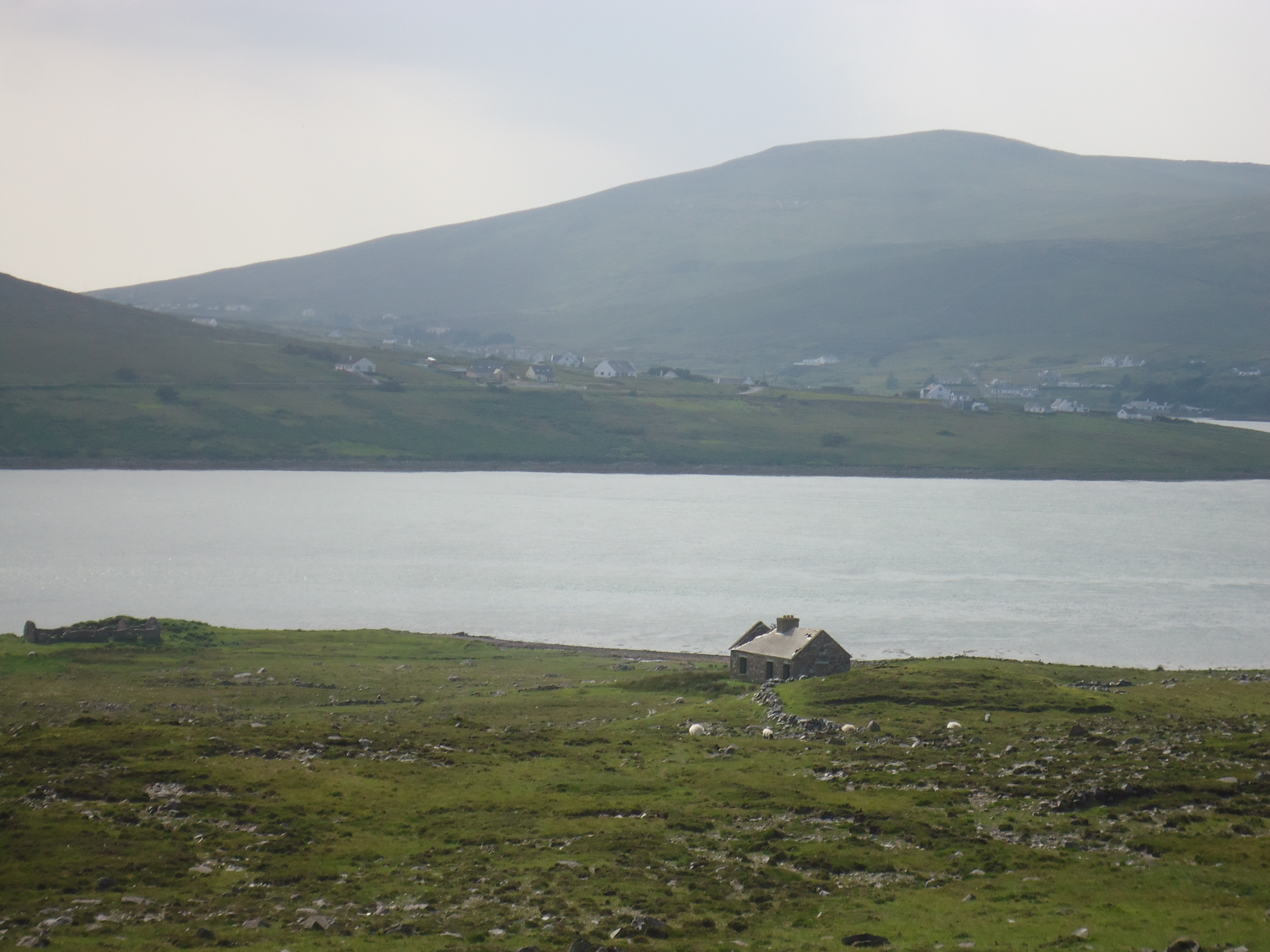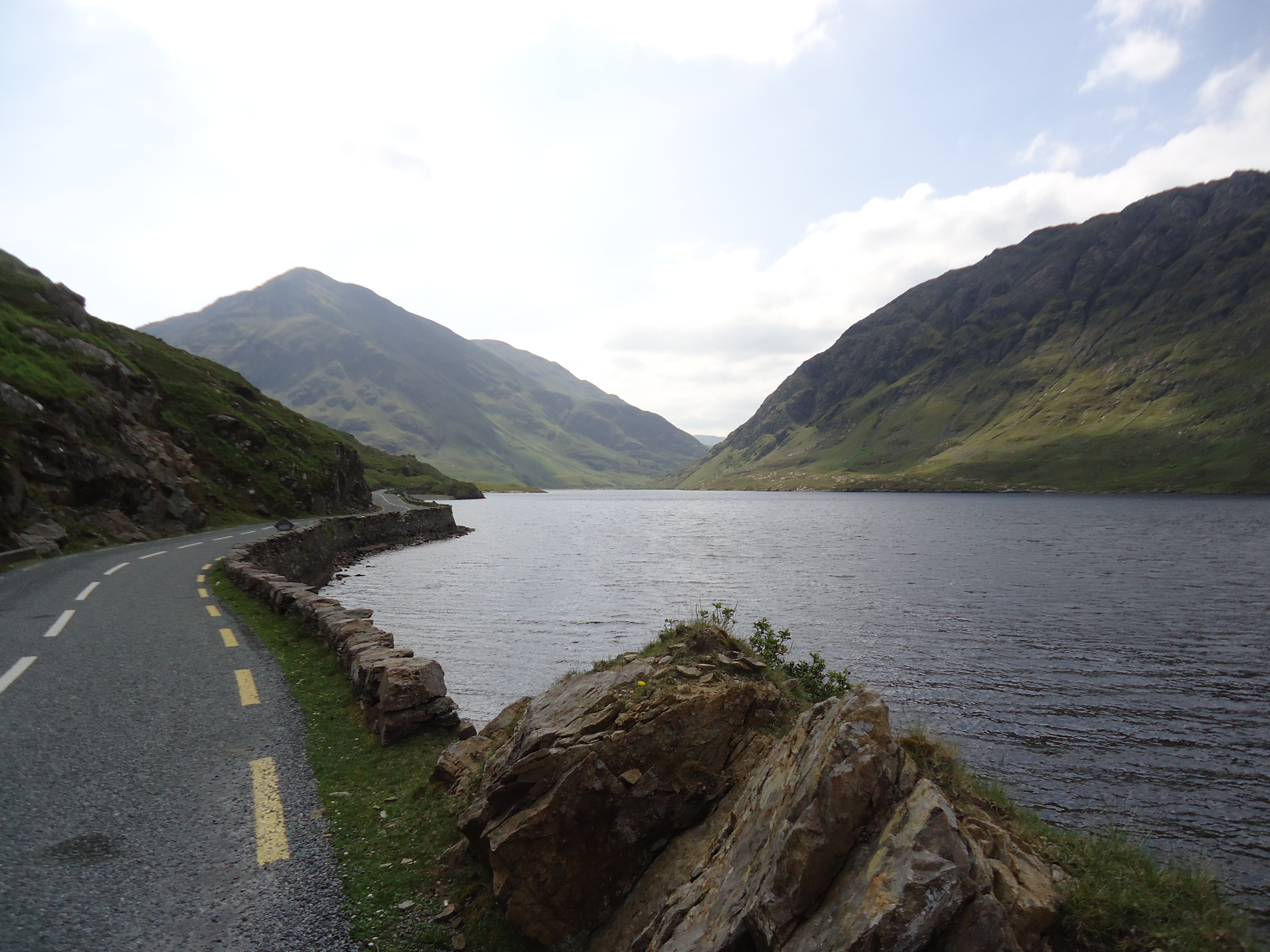 Doolough Valley, through which a famine trail wends its sad way to ports on the west coast. The starving denizens of County Mayo slowly walked to the coast to try to make their way to a better life during the mid to late 1800s. On the Burren tour, the driver said the population of Ireland dropped from 8 million to 2.8 million during this period, with the bulk of the people dying or emigrating.