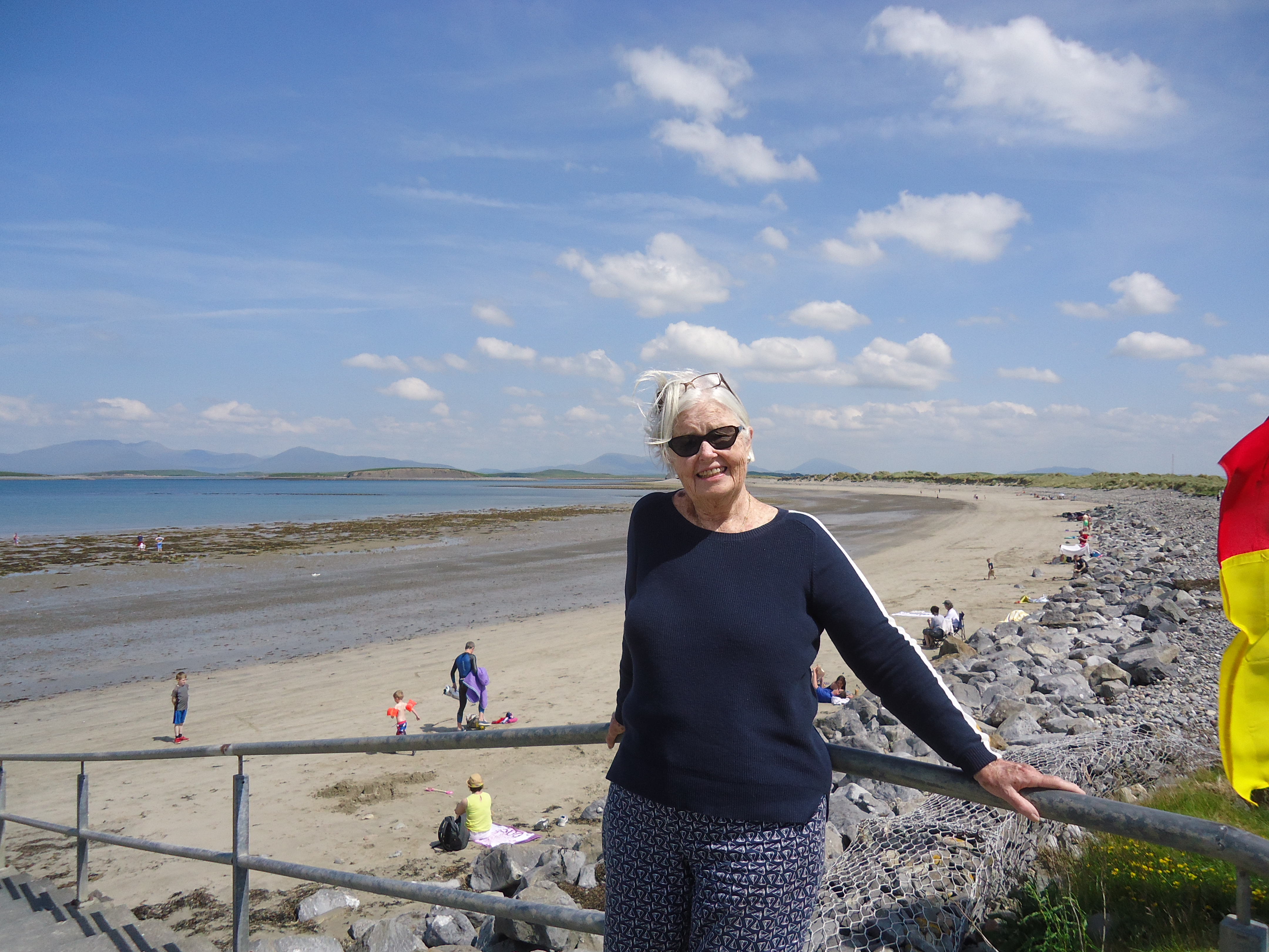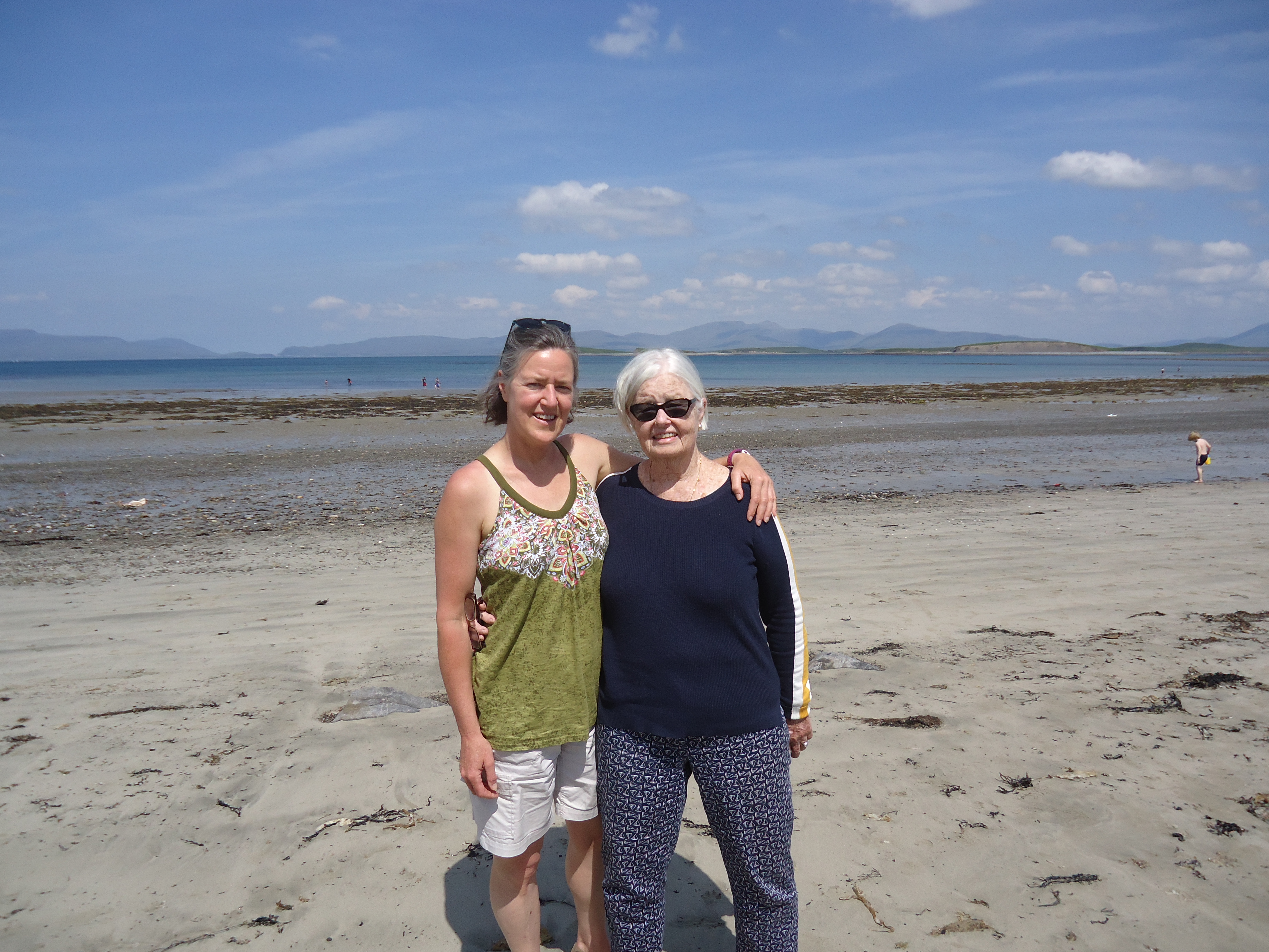 When you exit the valley, you drive along Clew Bay, with beautiful beaches on your left and Croagh Patrick Mountain, site of religious pilgrimages, on your right. Mom was happy to get some sand in her shoes.