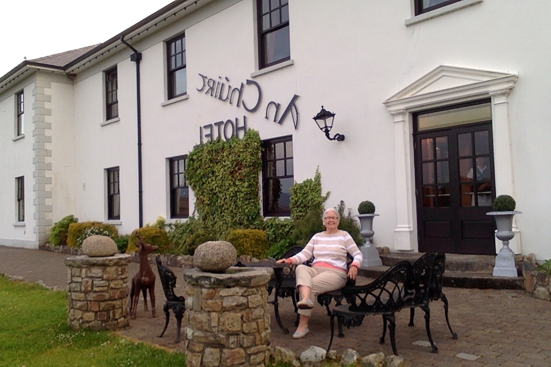 I should mention that I’m now taking photos on my MacBook, which reverses everything. So you are seeing the name of our hotel in Irish backwards. Good luck with that.