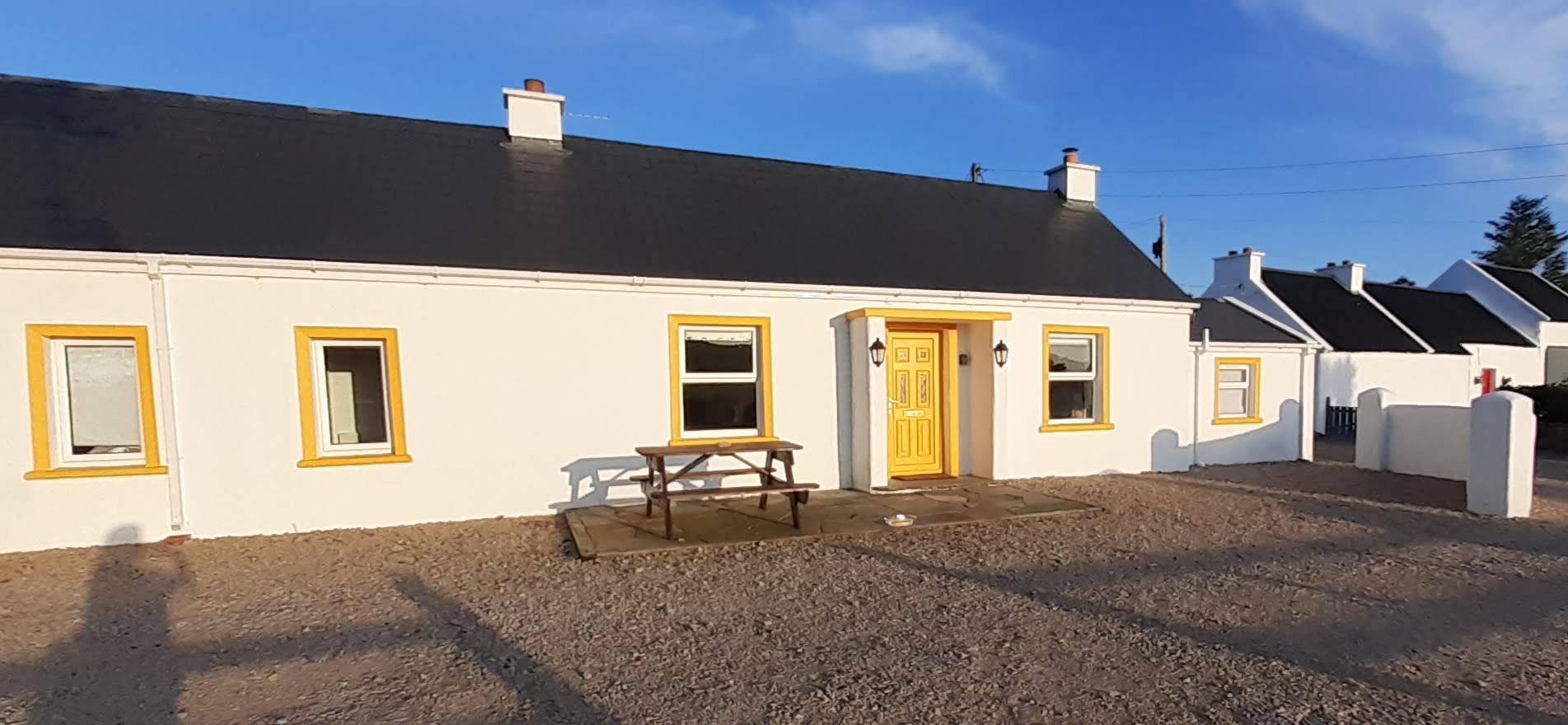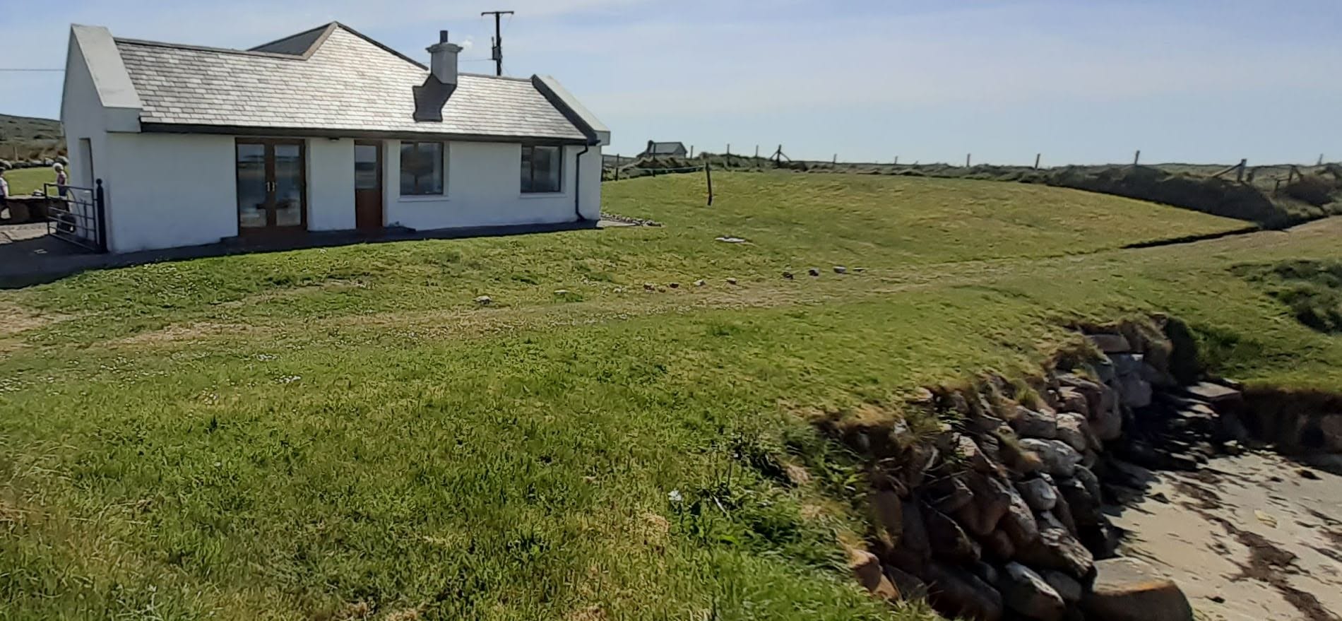 Wednesday morning we headed to Derry, where Dara toured the city walls. Then on to Donegal. We stopped at Killahoey beach near Dunfanaghy for the dogs to stretch their legs and swim. Then to Gortahork. Here's our charming wee cottage.