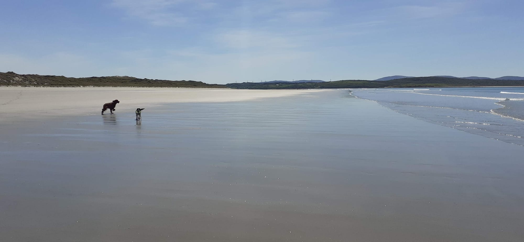 Then we drove west to meet my neighbour Fiona in Lettermacaward. From there, we followed her 10-15 minutes to Dooey beach, which we would never have found on our own. Here are Paddy and Fiona's dog Jackson. Daphne was probably heading toward the dunes – I had to call her back repeatedly.