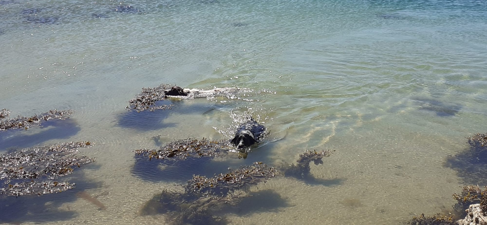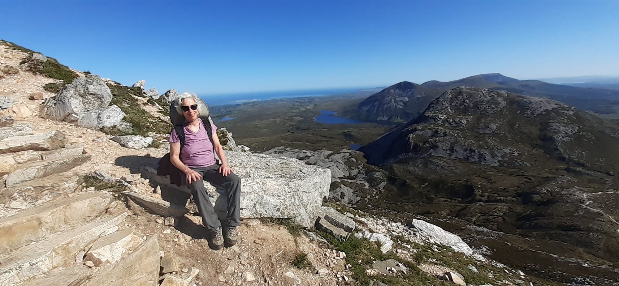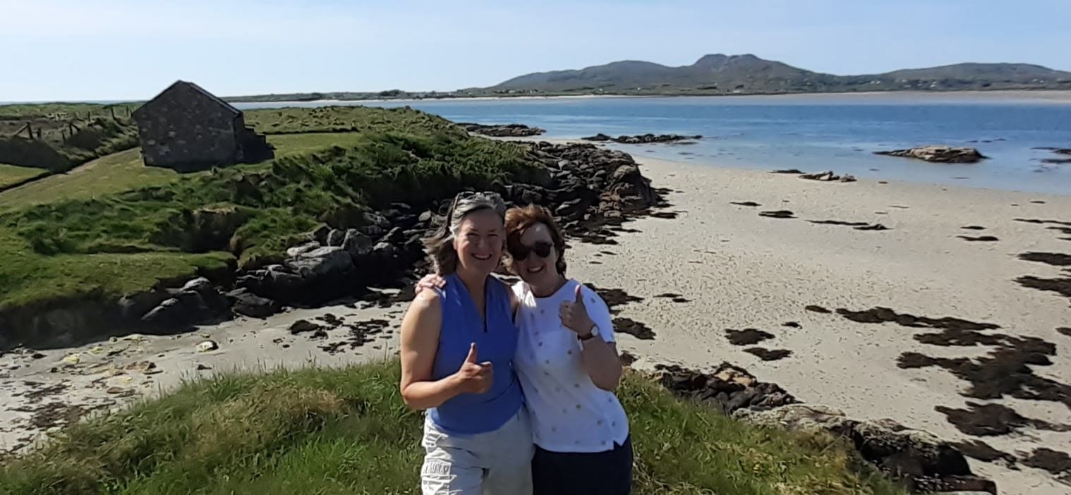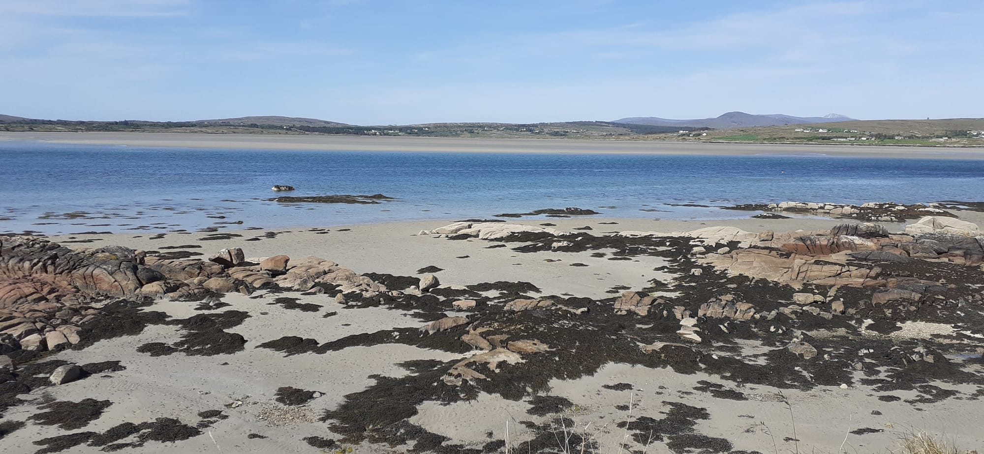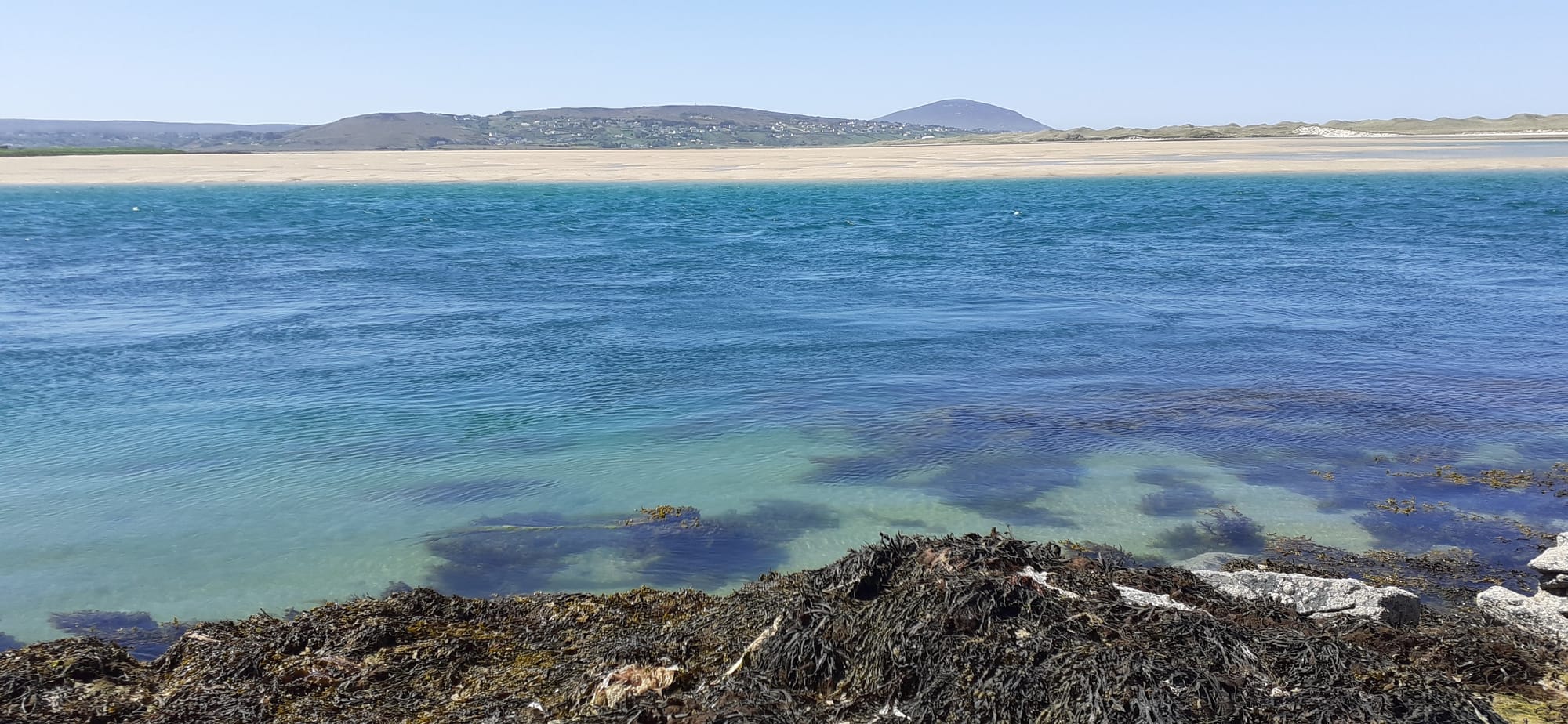 Not many visitors get the views she's enjoying. Next up, lunch at Batch in Falcarragh, then a quick trip to the beach by Ballyness pier to give the dogs a cooling dip. None of my photos do justice to the colours of the waters and beaches.